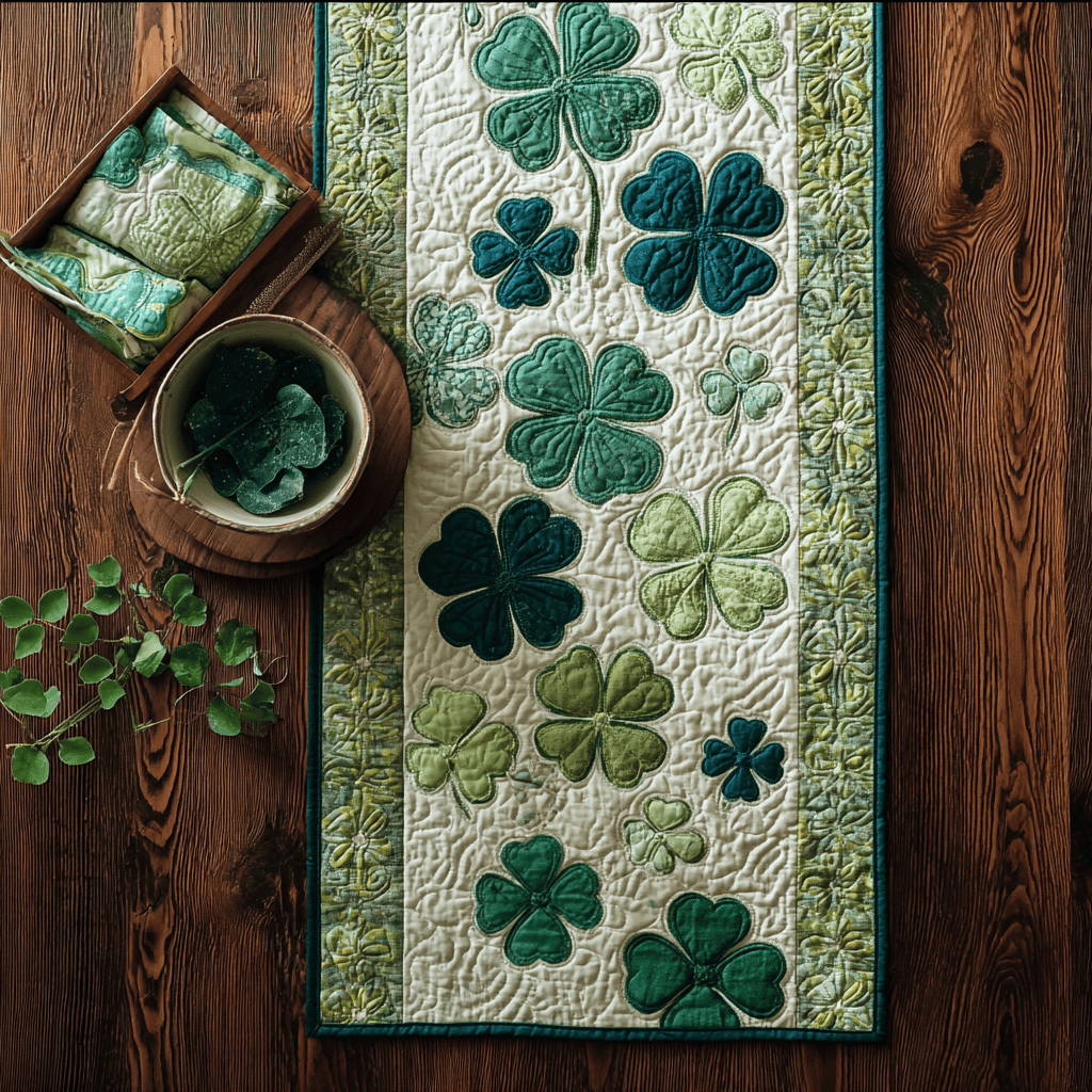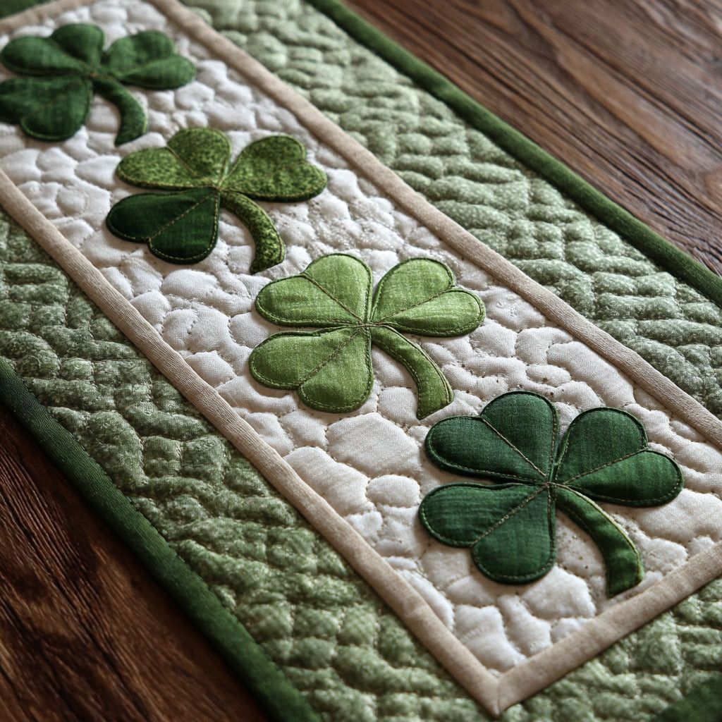 Rushgleam Clover Charm Quilted Table Runner Shamrock Day Dining Room Decor St Patrick’s Day Gift Ideas