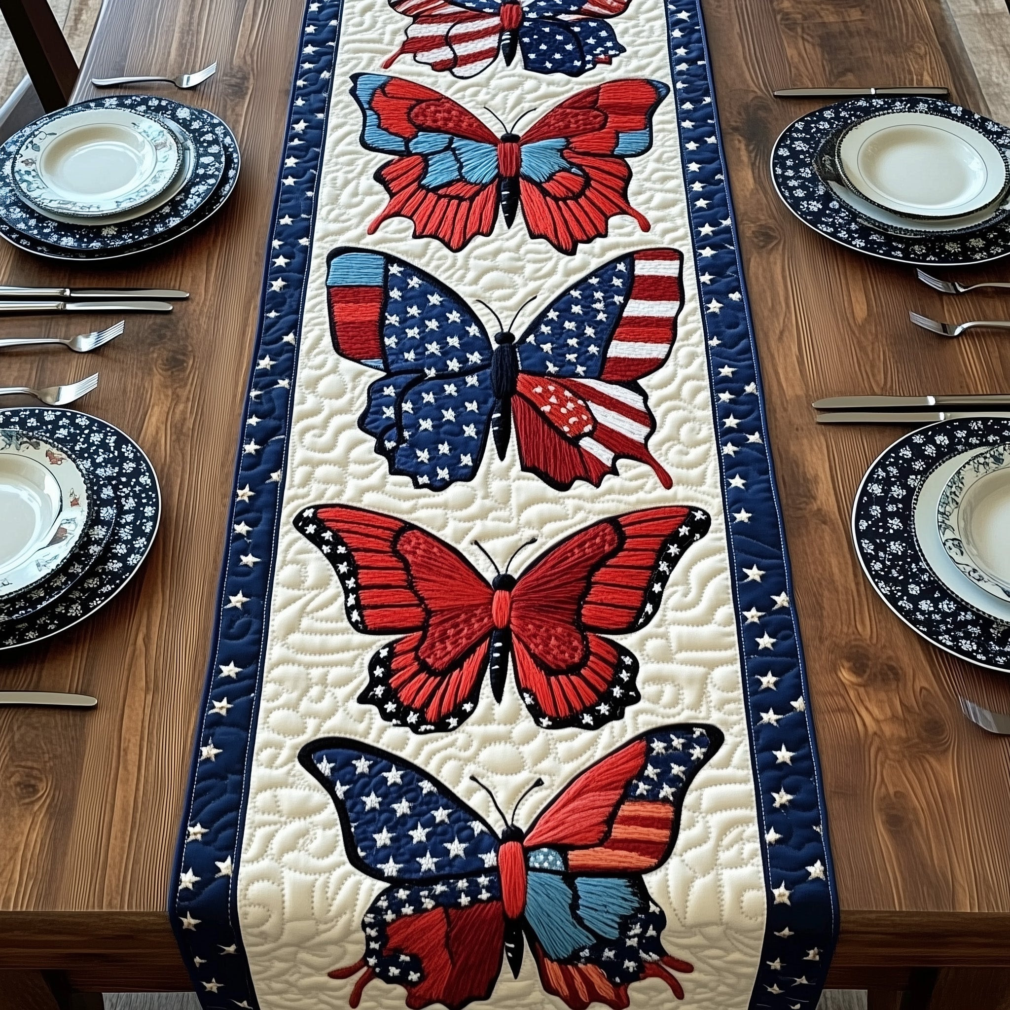 Patriotic Butterfly Quilted Table Runner Autumn Table Runner 4Th Of July Employee Gifts