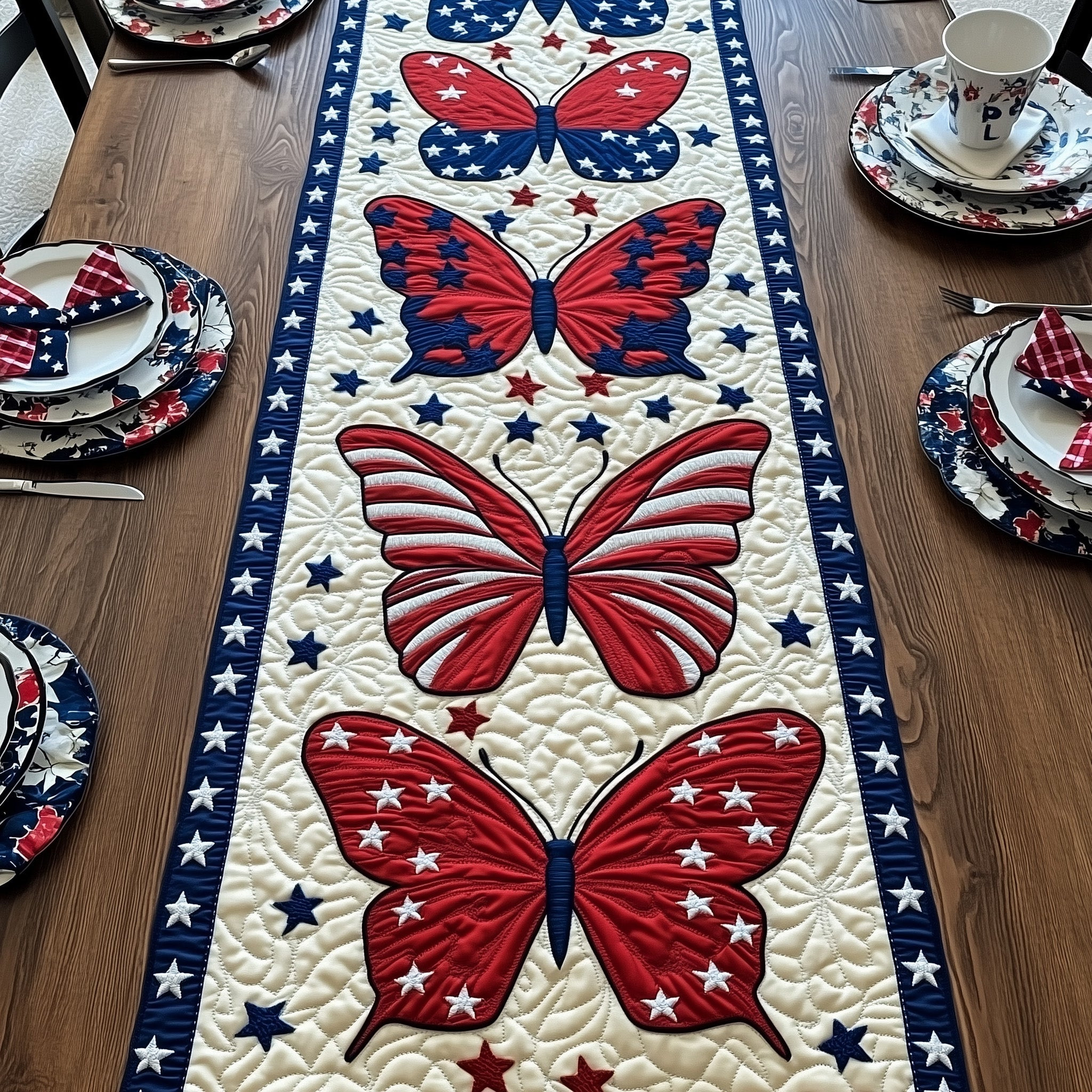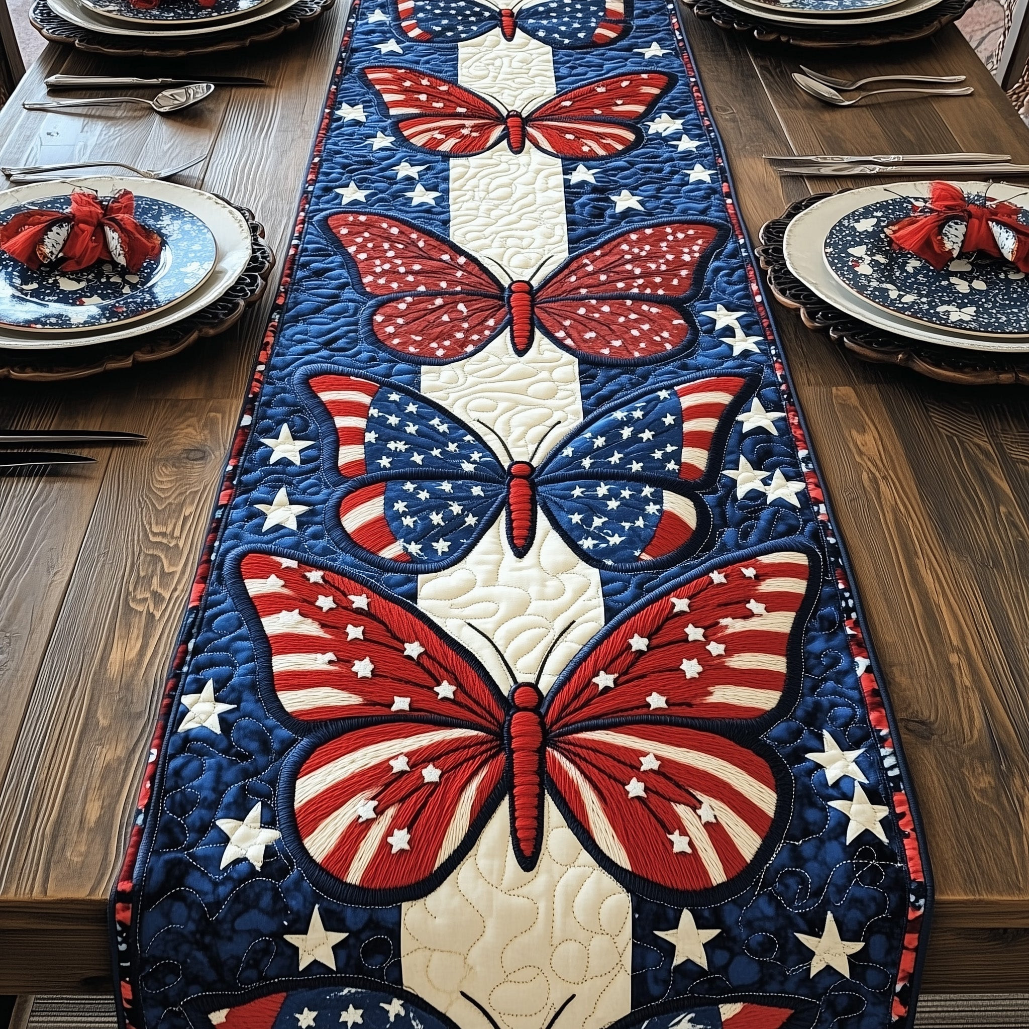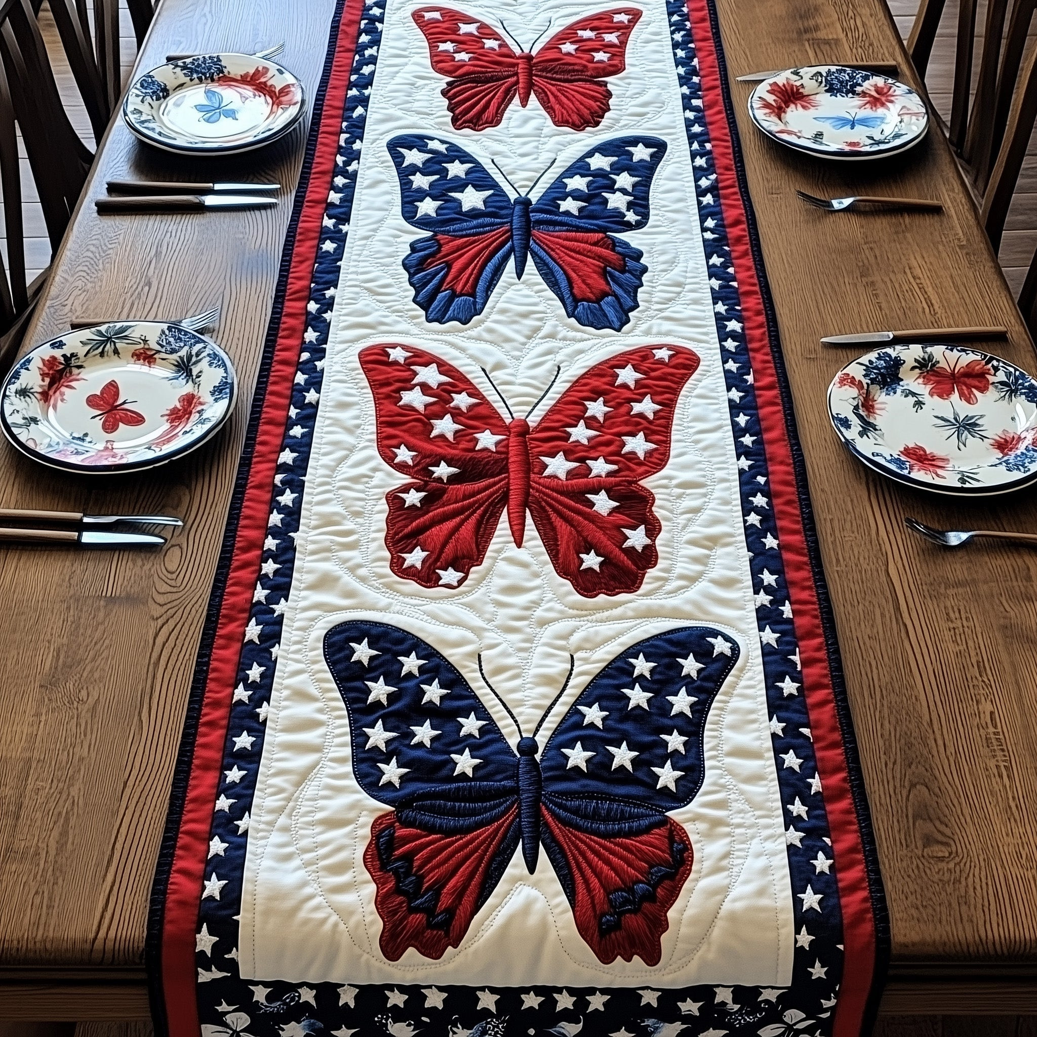 Patriotic Butterfly Quilted Table Runner Dining Table Runner 4Th Of July Employee Gifts