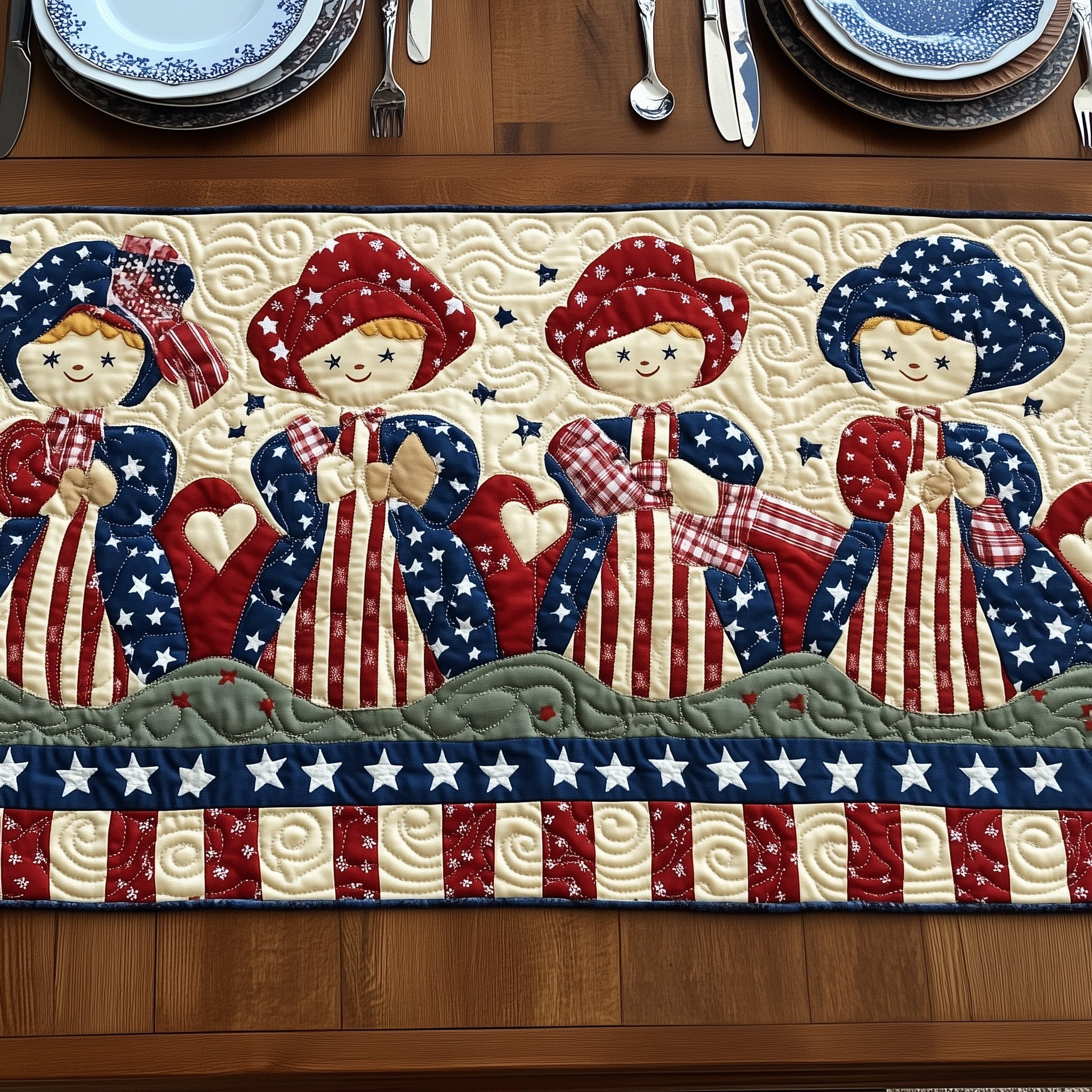 Patriotic Sunbonnet Sue Quilted Table Runner Holiday Table Runner Fourth Of July Hostess Gifts