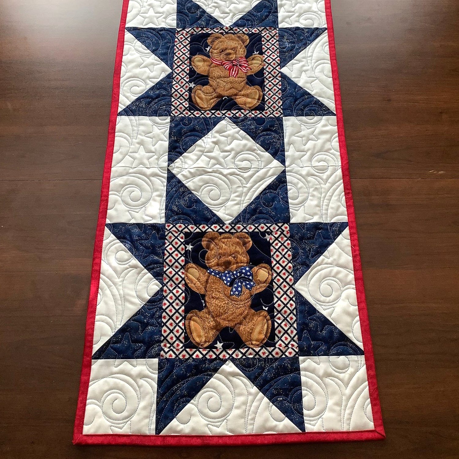 Patriotic Teddy Quilted Table Runner Independence Day Runner 4Th Of July Present