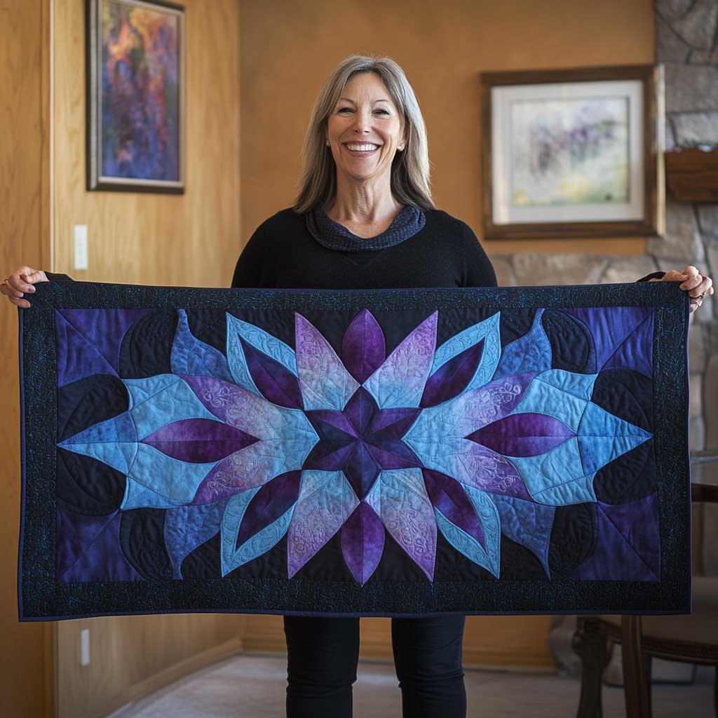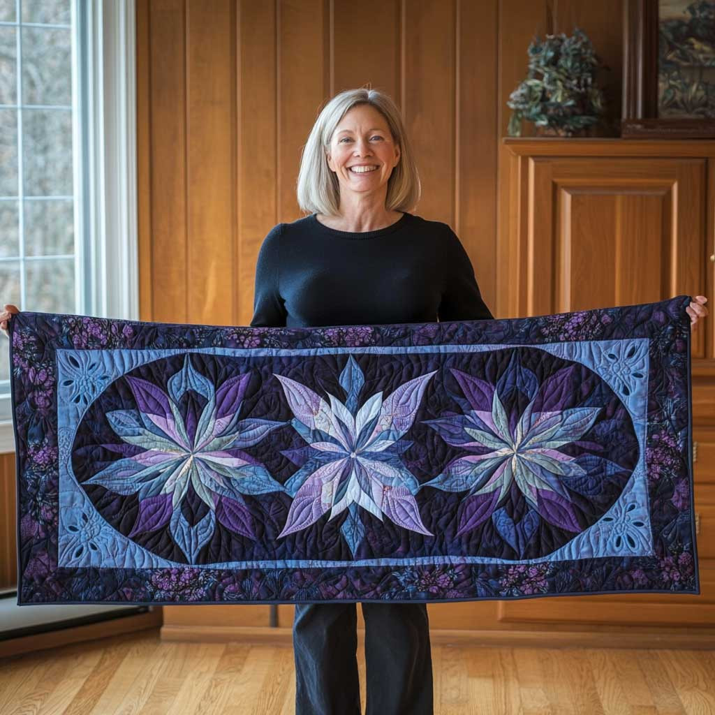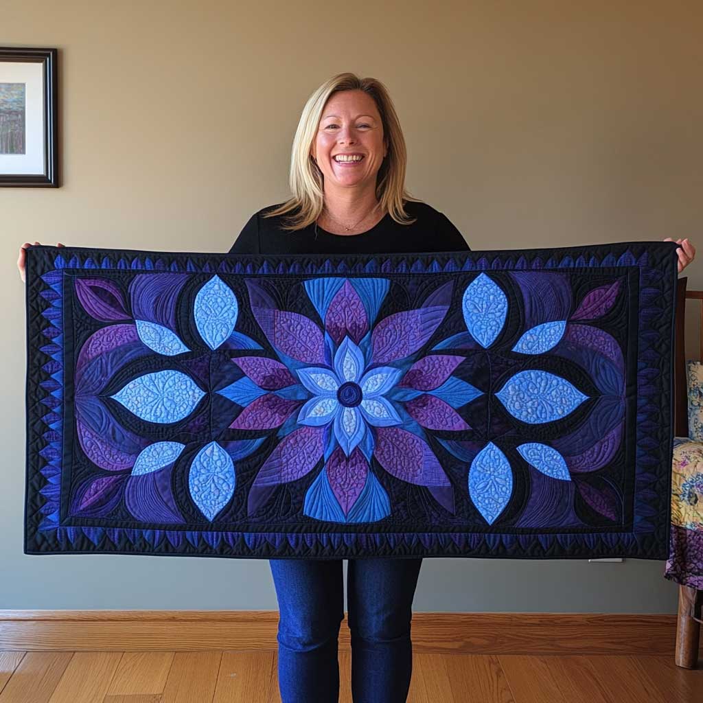 Blue Mystic Petals Quilted Table Runner Holiday Table Runner Birthday Presents For Mum