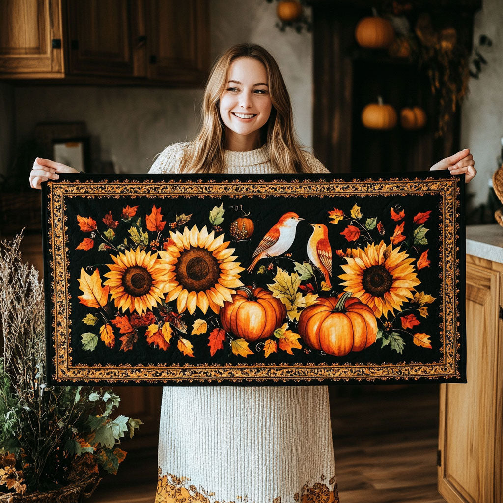 Bright Sunflower Pumpkin Quilted Table Runner Holiday Table Runner Birthday Presents For Mum