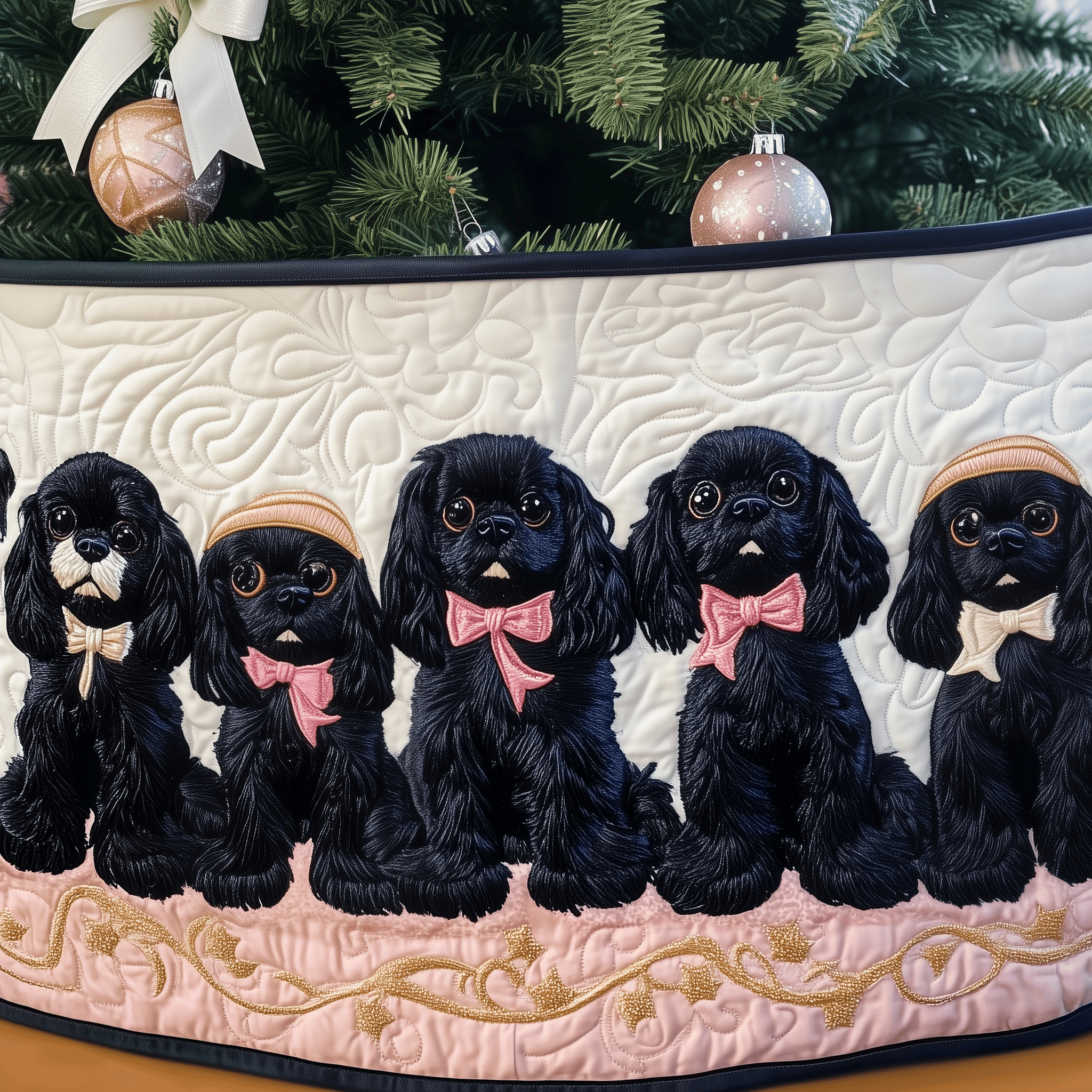 $37.95 – $69.95Price range: $37.95 through $69.95Charming Black Poodle Christmas Tree Surround Quilted Dog Design Holiday Gift for Owners