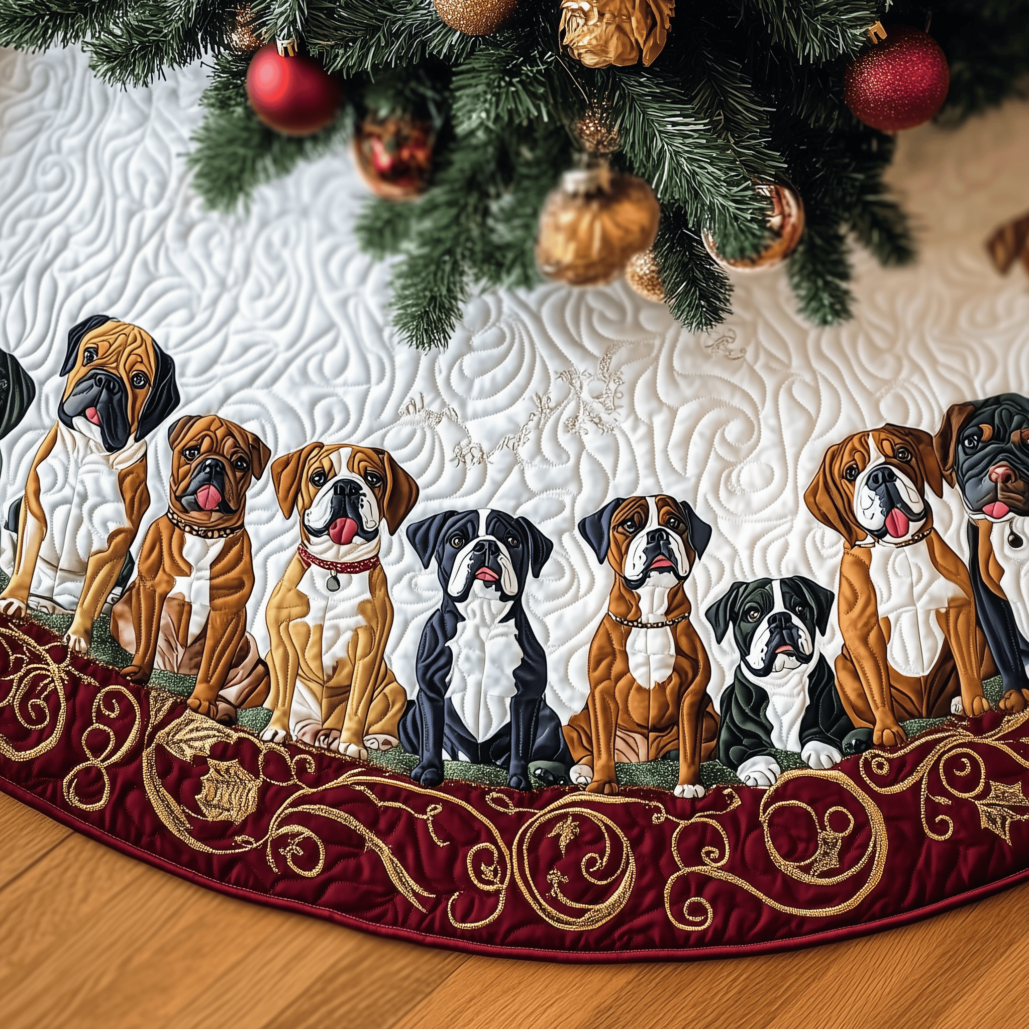 $37.95 – $69.95Price range: $37.95 through $69.95Charming Bulldog Christmas Tree Skirt Handmade Quilted Dog Lover Holiday Decoration Gift