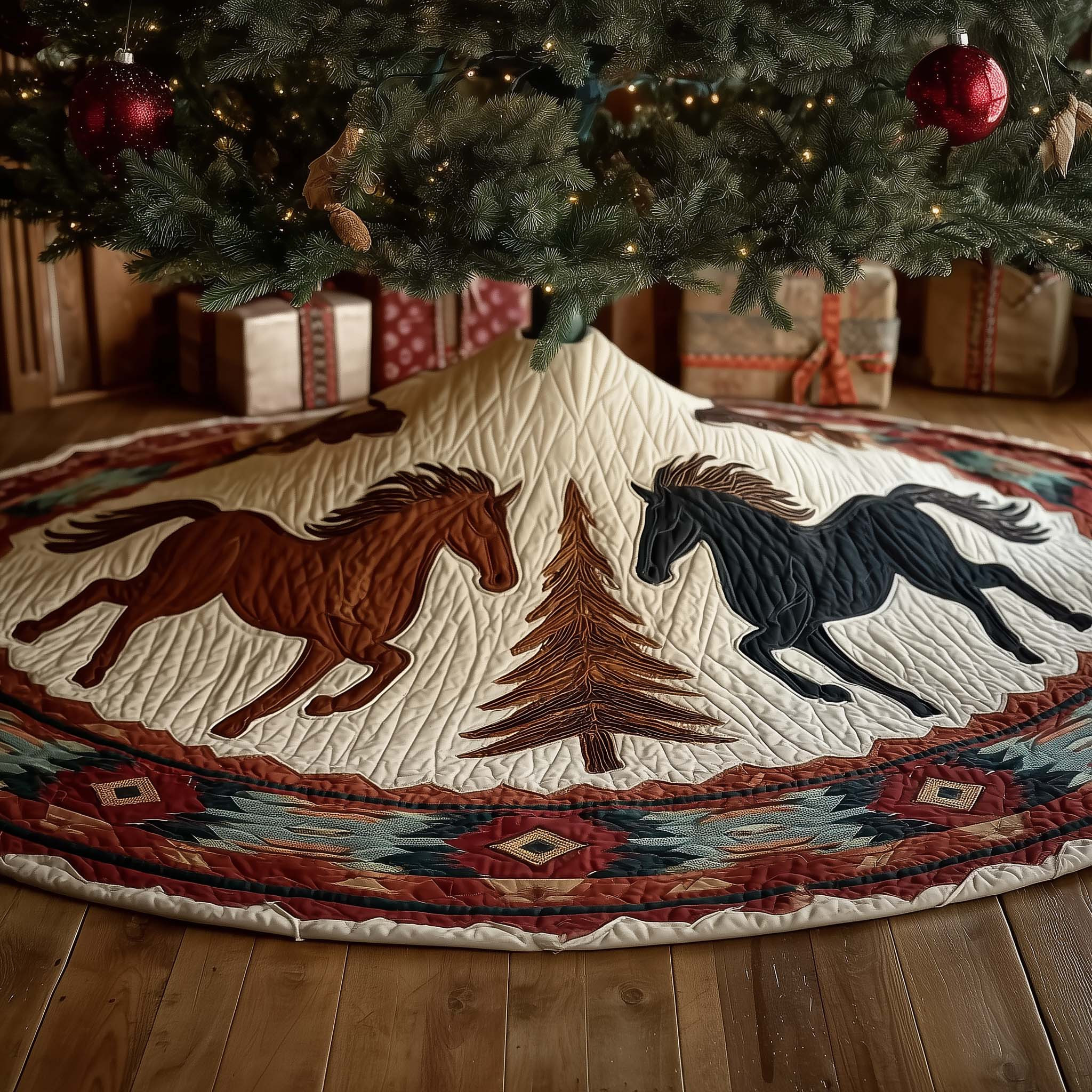 Rushgleam Horse Quilted Tree Skirt Xmas Room Decorating Gifts For Female Horse Lovers