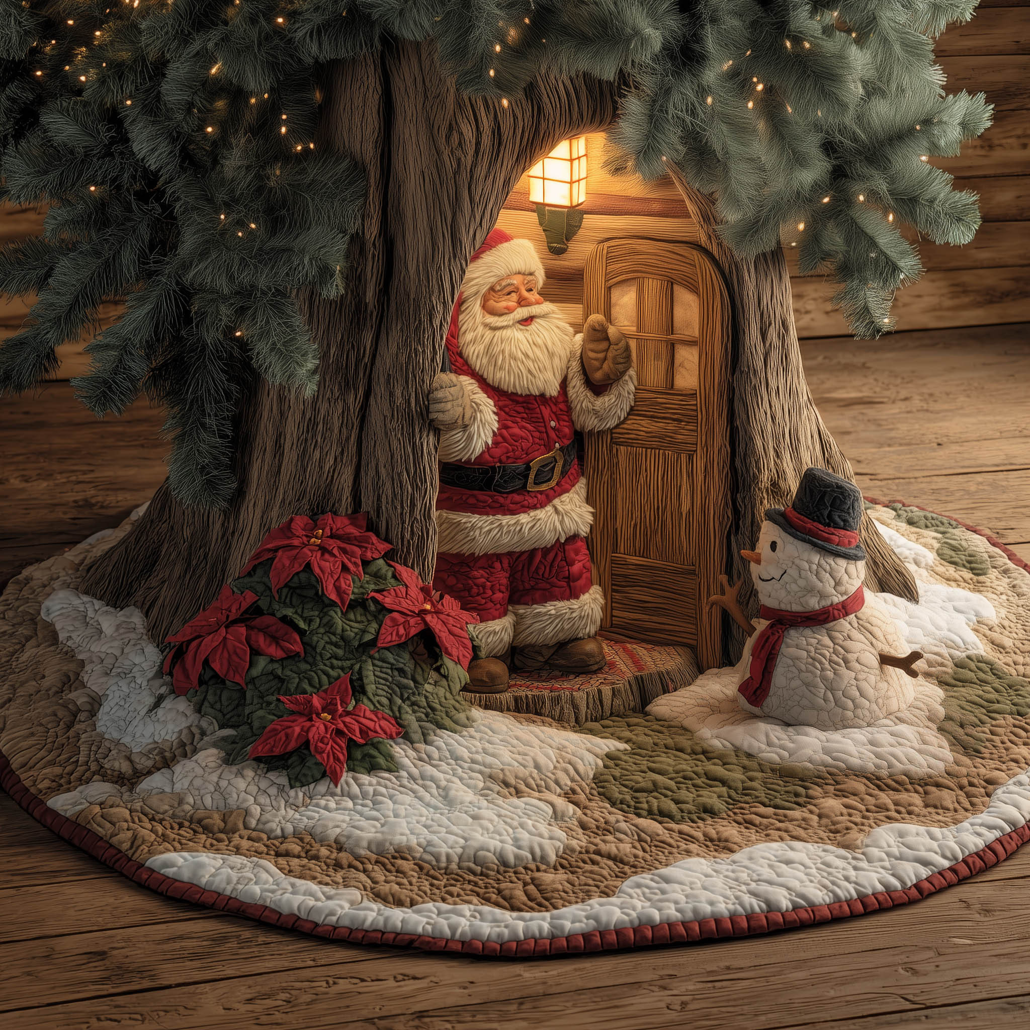 Rushgleam Santa Knock Knock Christmas Quilted Tree Skirt Xmas Tree Surround Decor Santa Gifts