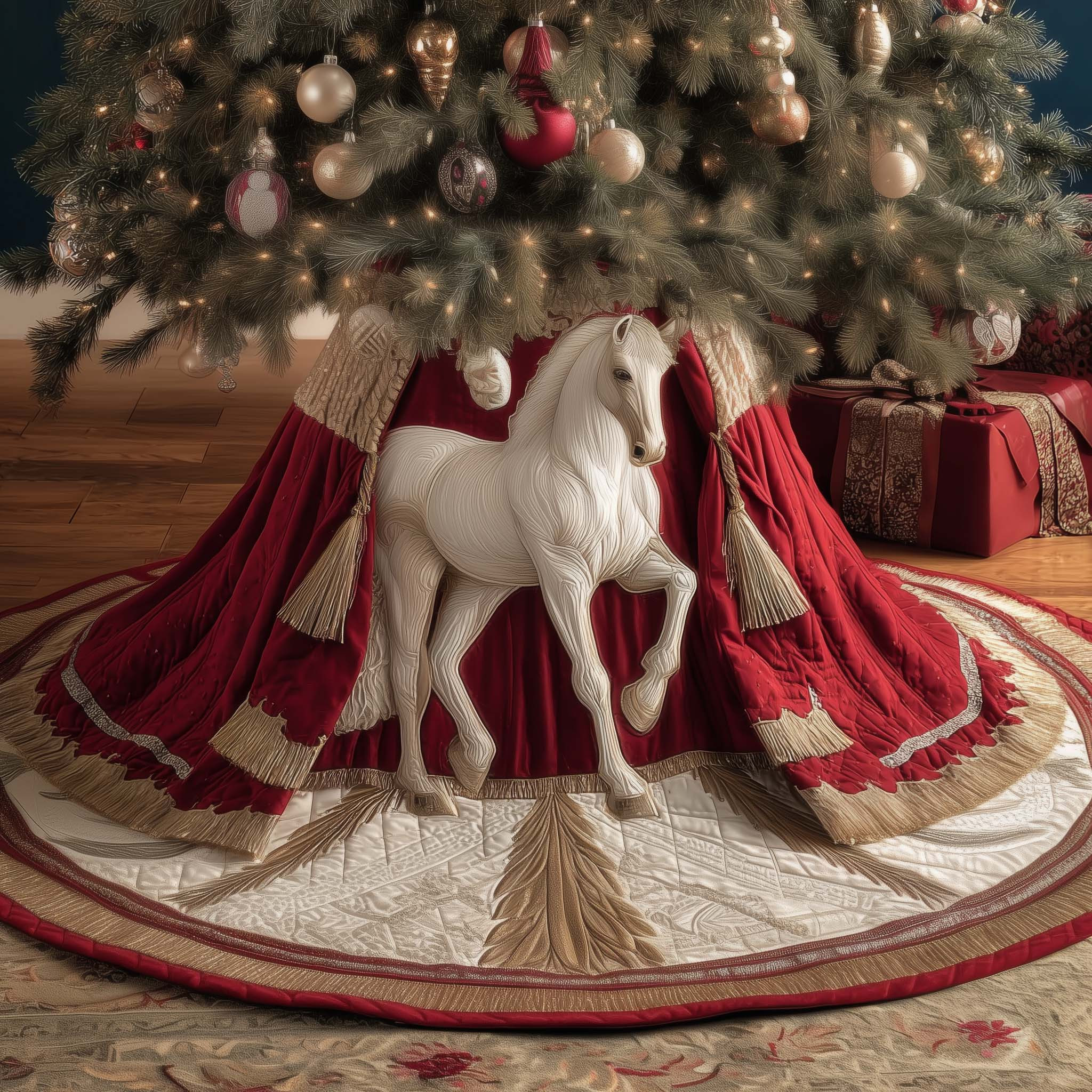 Rushgleam Stallion Christmas Quilted Tree Skirt Festive Tree Surround White Horse Themed Gifts