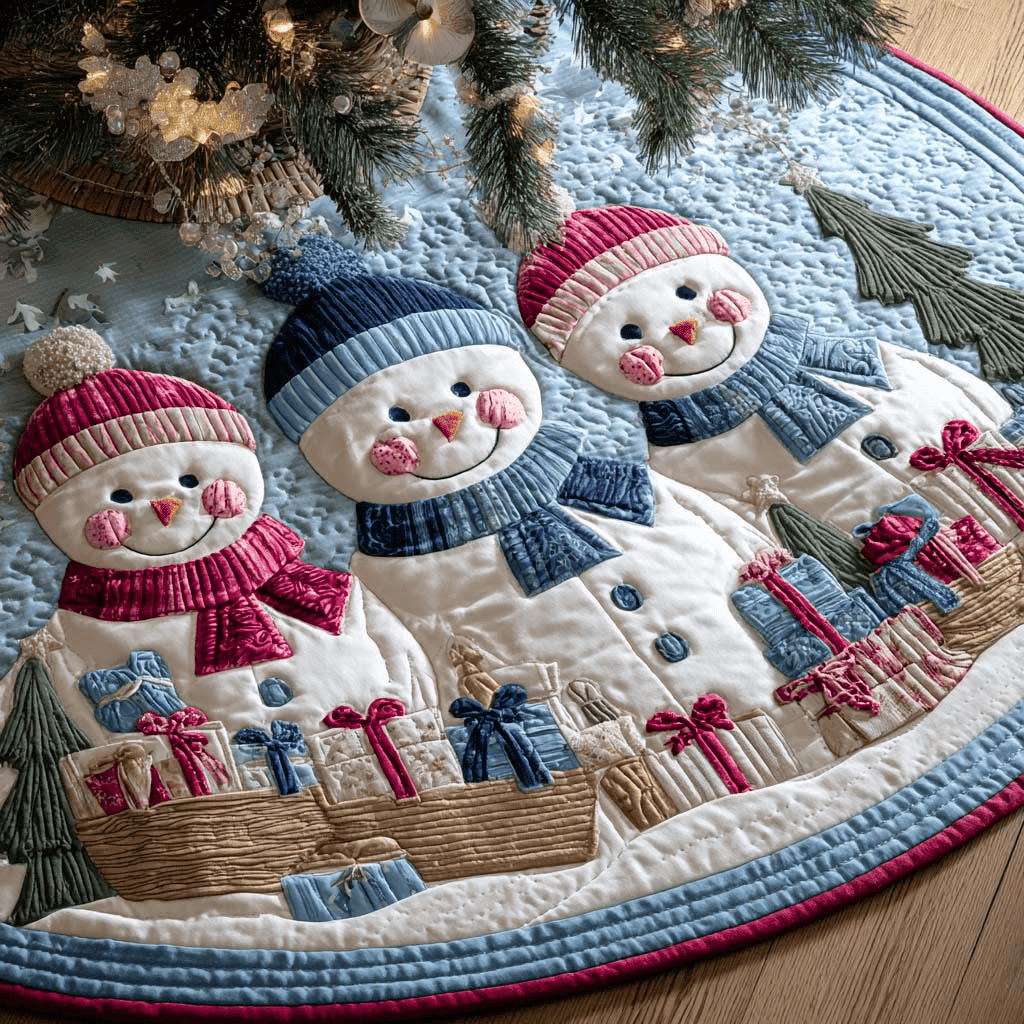 $37.95 – $69.95Price range: $37.95 through $69.95Three Snow Friends Quilted Christmas Tree Skirt Festive Spirit Gift for Dad