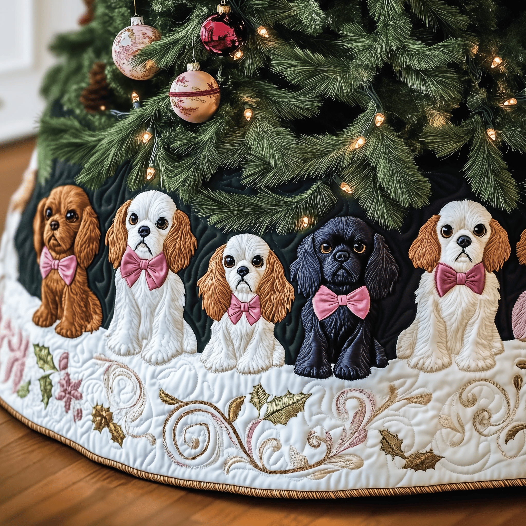 $37.95 – $69.95Price range: $37.95 through $69.95Festive Cavalier Christmas Tree Skirt Quilted Dog Design Holiday Decor Perfect Gift Idea