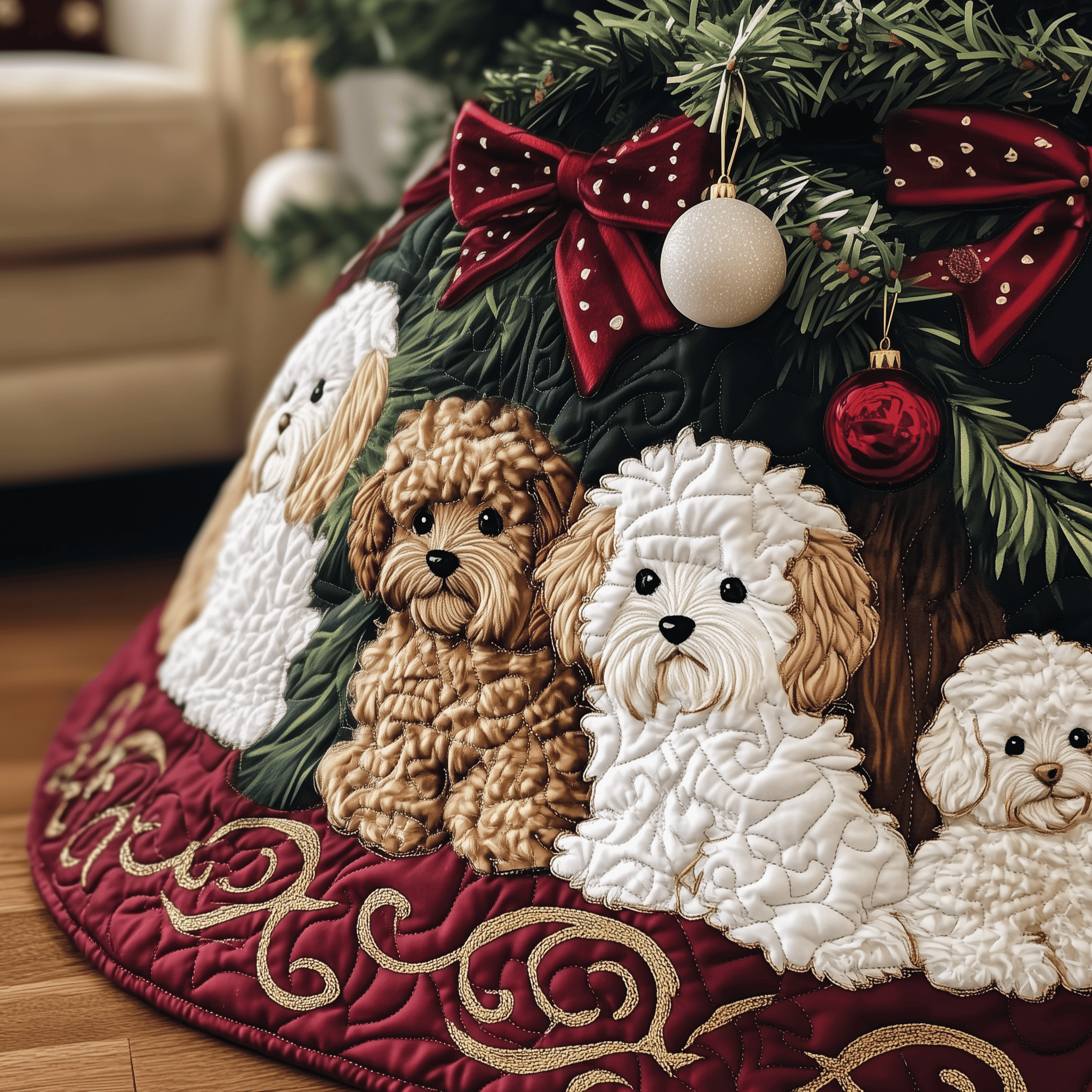 $37.95 – $69.95Price range: $37.95 through $69.95Handmade Dog Modern Tree Skirt Quilted Labradoodle Holiday Decoration Gift for Cozy Decor