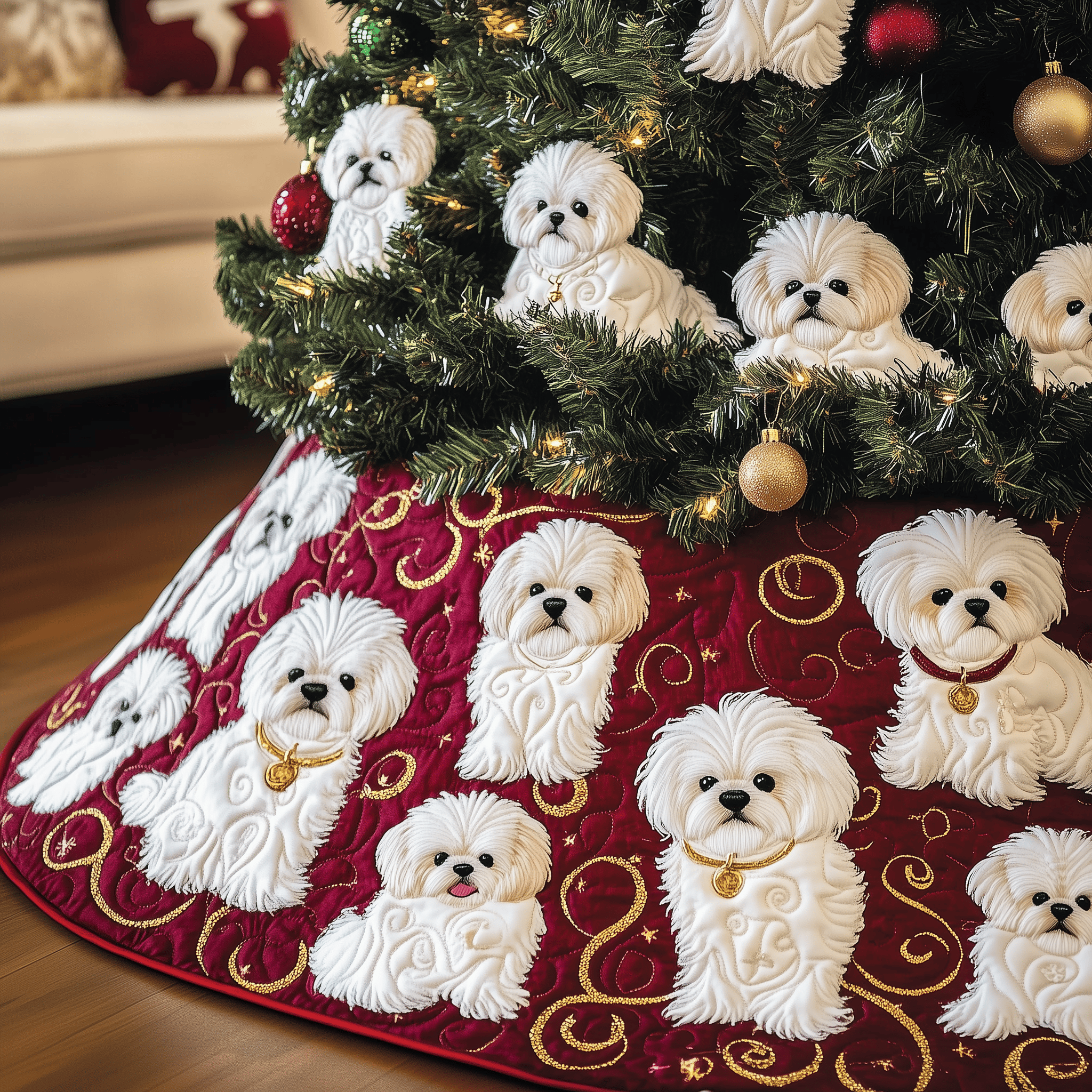 Luxury Shih Tzu Dog Tree Skirt Quilted Holiday Decoration and Gift for Pet Owners