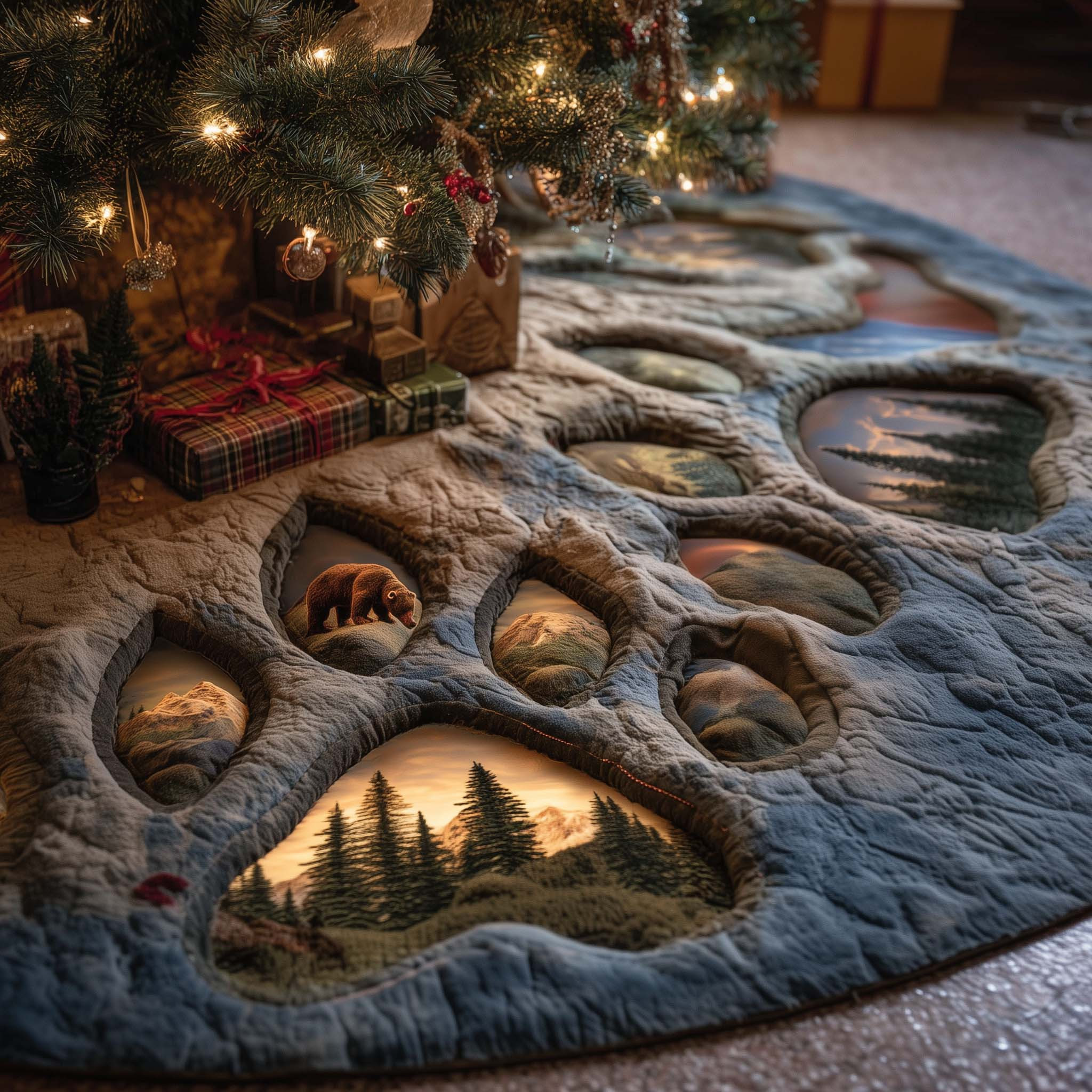 Rushgleam Bear Forest Spirit Quilted Tree Skirt Christmas Room Decor Cute Bear Themed Gifts