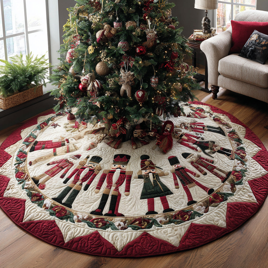 Festive Sentinel Quilted Christmas Tree Skirt Xmas Tree Base Cover Gift For Mom
