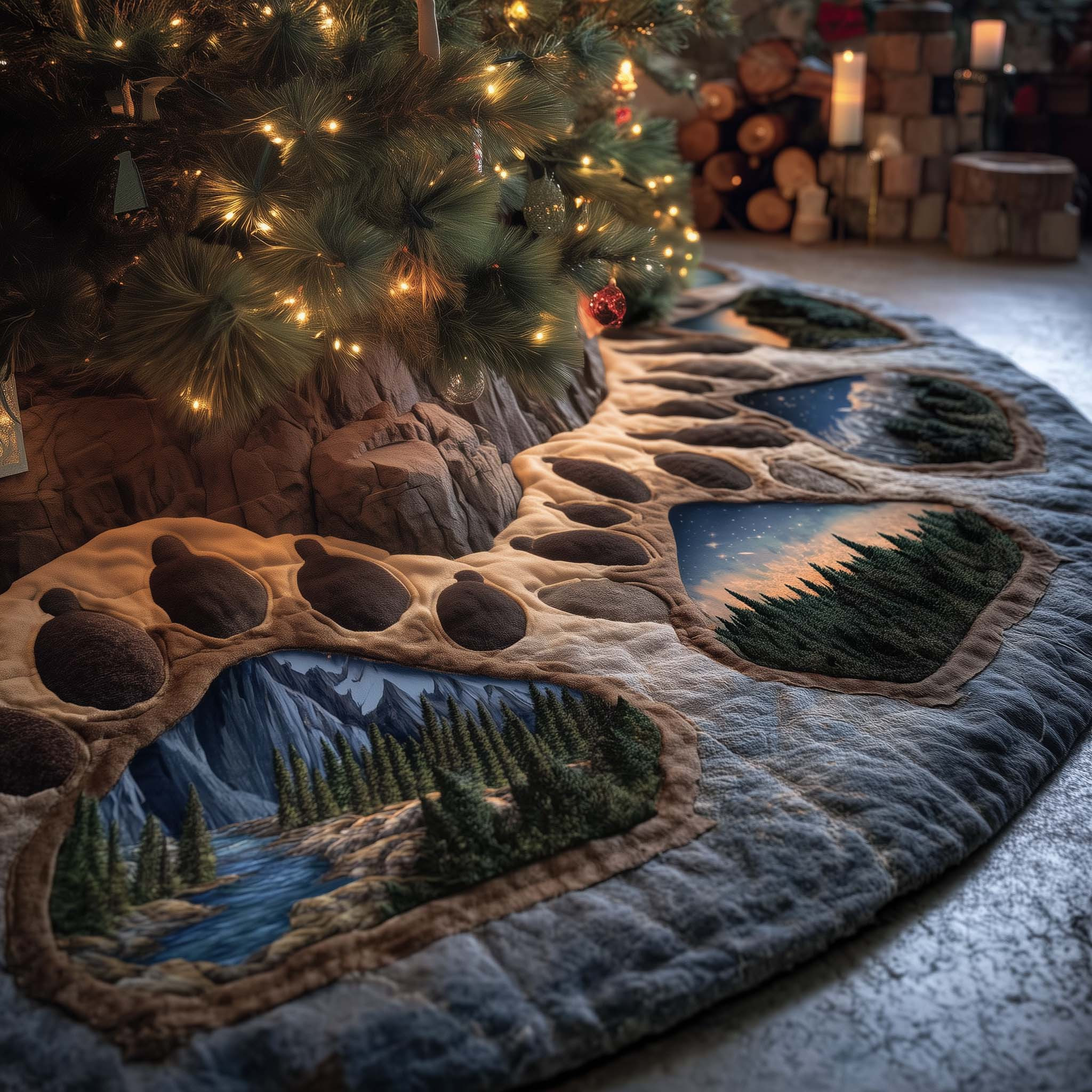 Rushgleam Bear Paws Quilted Tree Skirt Xmas Room Decorating Bear Lovers Gifts For Him