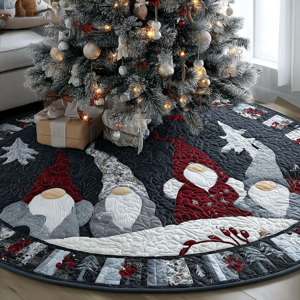 Gnome Cheerland Christmas Quilted Tree Skirt Holiday Tree Surround Cloth Gift For Families