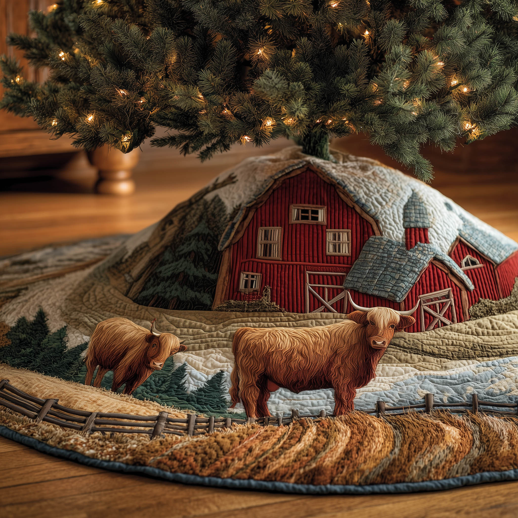 $37.95 – $69.95Price range: $37.95 through $69.95Rushgleam Highland Cow Den Christmas Quilted Tree Skirt Xmas Tree Base Cover Highland Cow Item Gifts