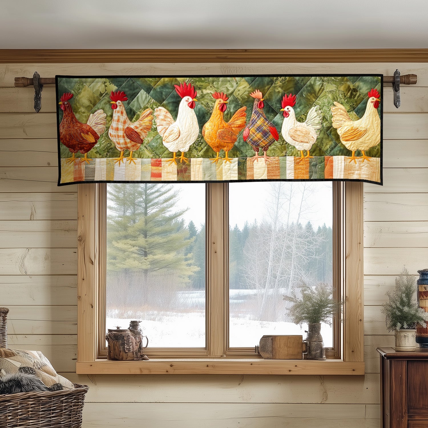 Autumn Plaid Chickens Quilted Valance Country Style Quilted Valance Christmas Gifts For The Farmer