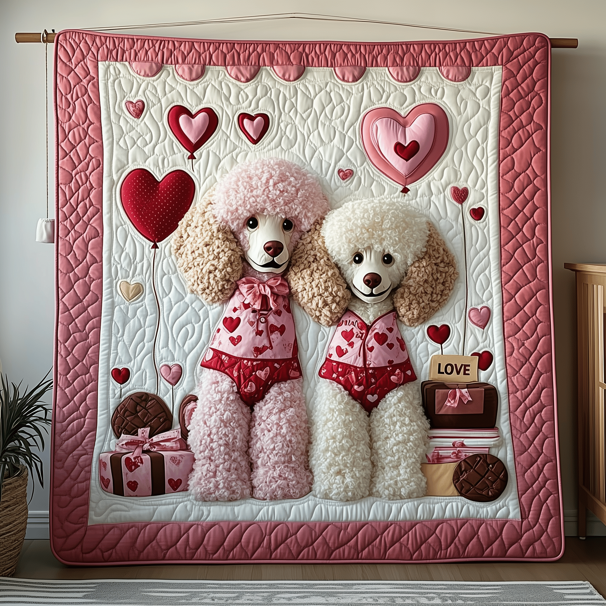 $55.95 – $99.95Price range: $55.95 through $99.95Beautiful Valentine Poodle Date Quilted Blanket Cute Bedroom Decor Unique Gifts For Wife