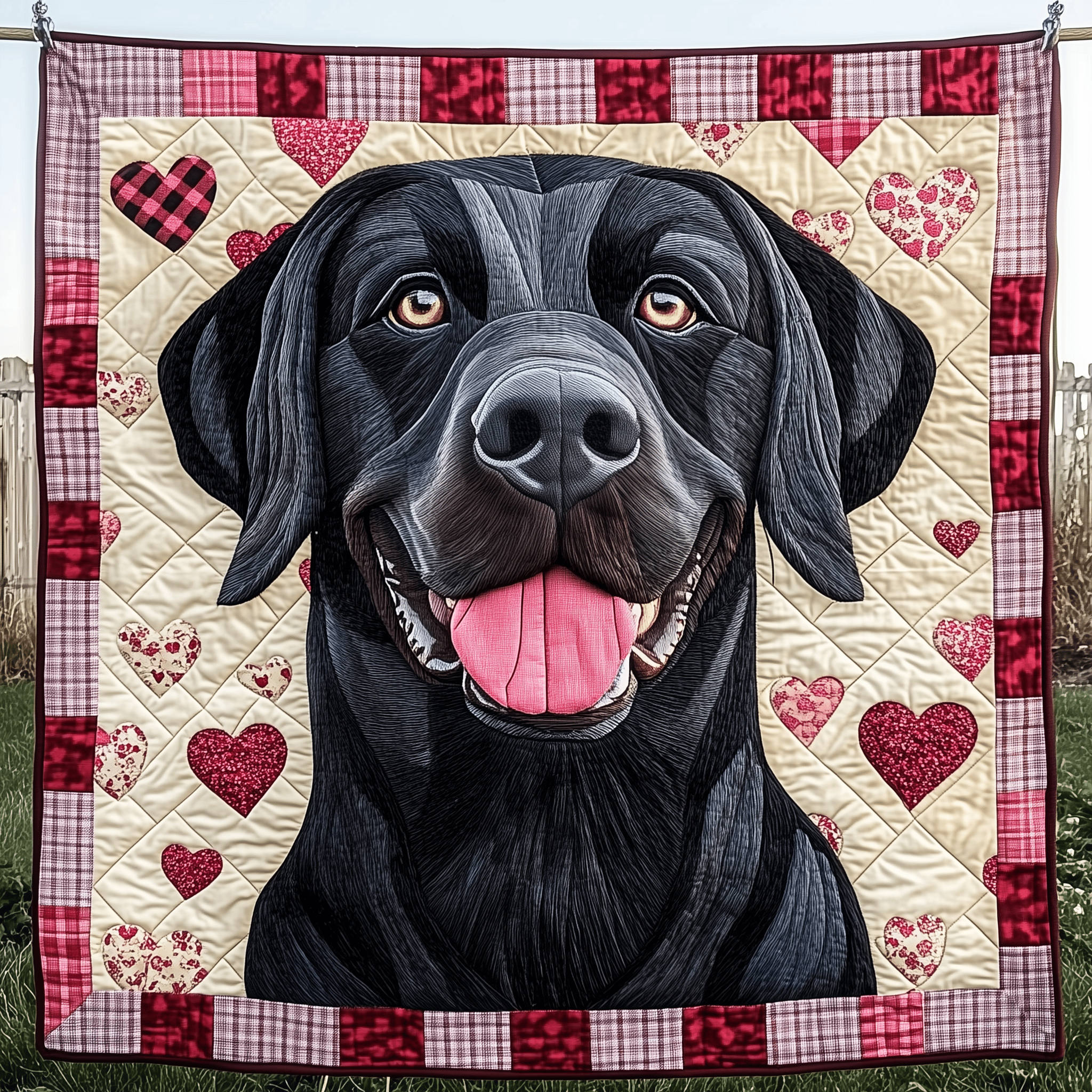 Black Labrador Valentine Quilted Blanket Animal Home Decor Dog Lover Presents