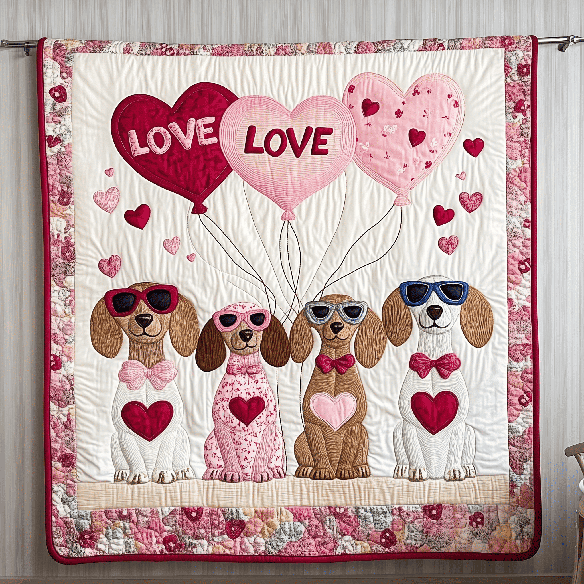 Valentine Dachshund Family Looking Quilted Blanket Bedroom Accessories Presents For Pulldog Fans
