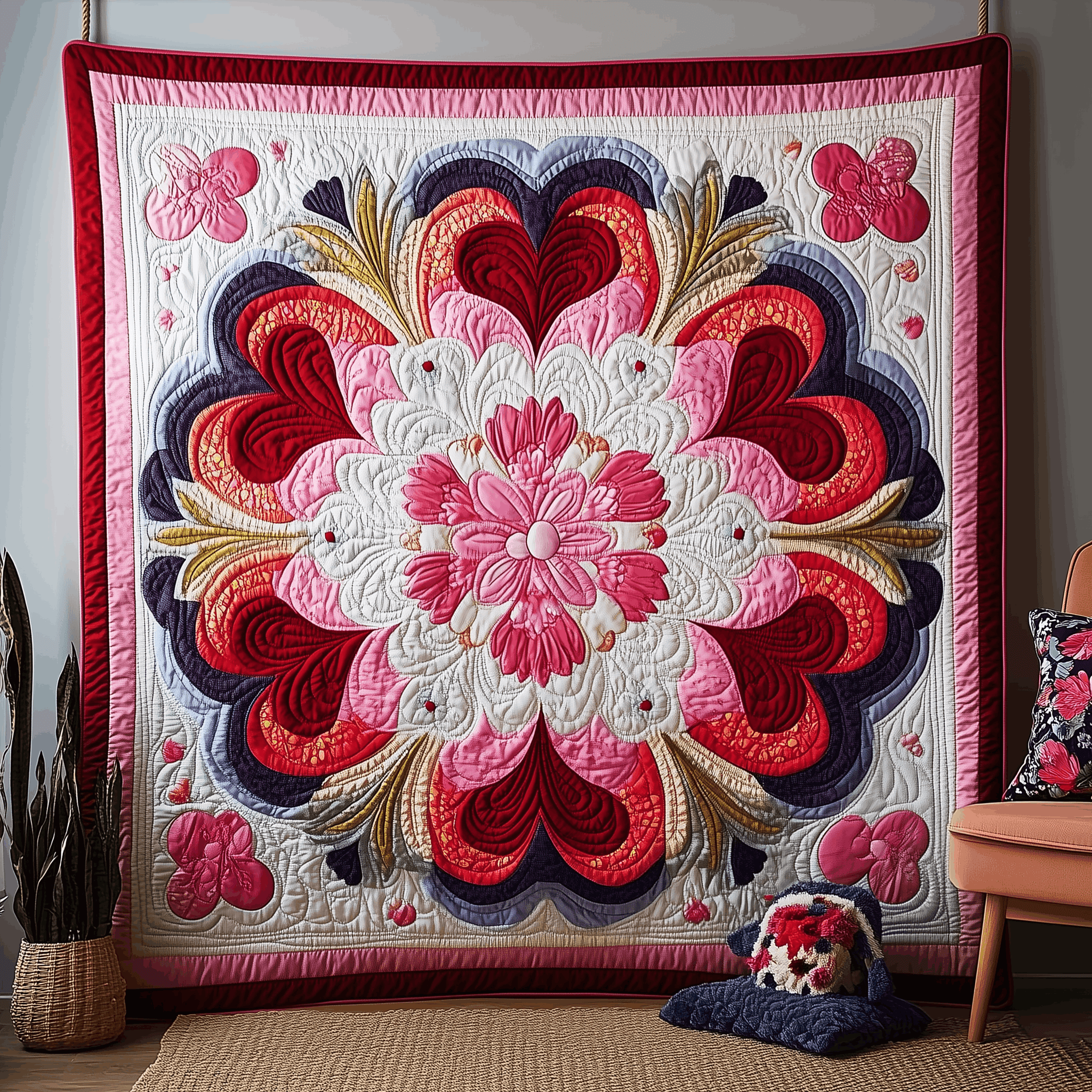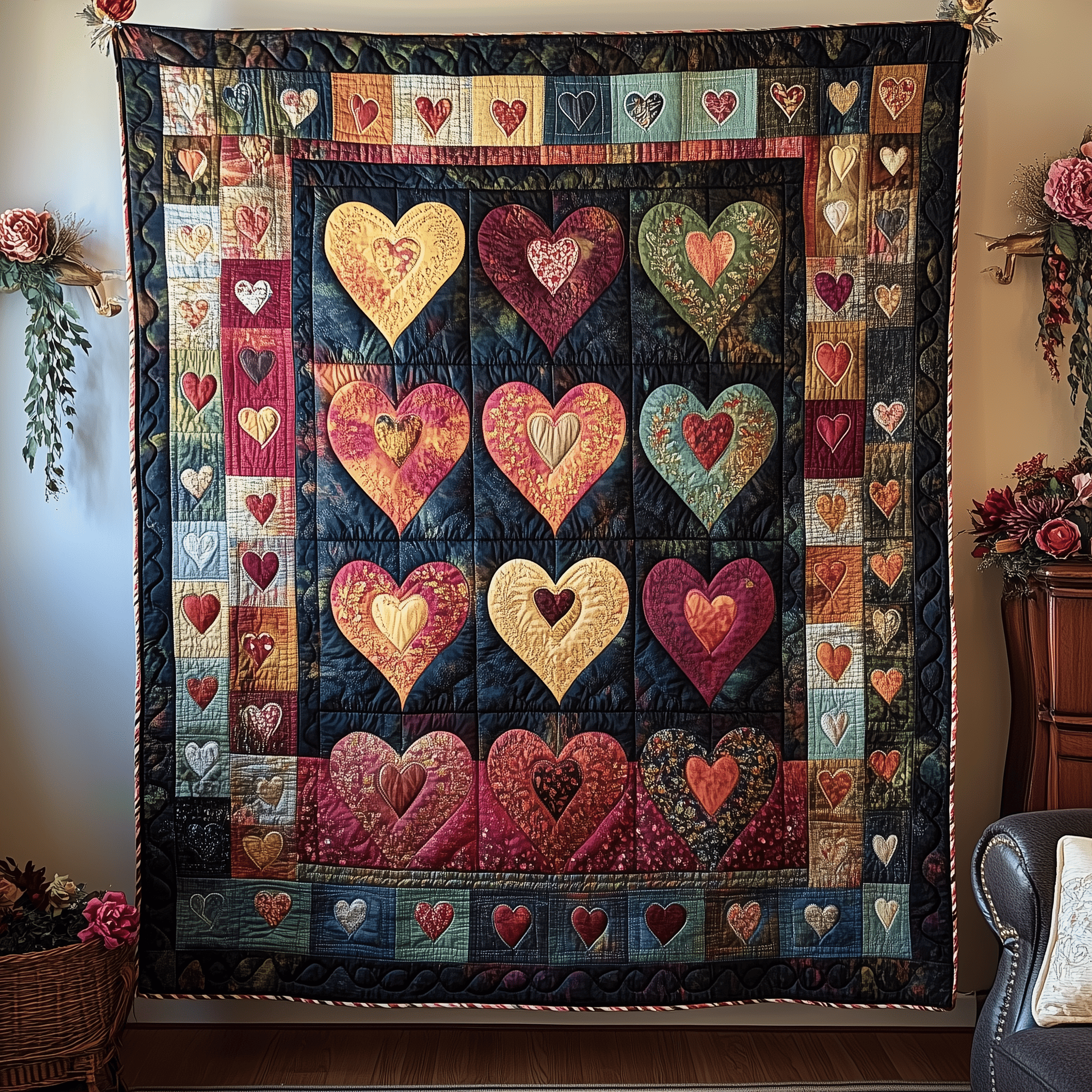 Warm Heart Vintage Quilted Blanket Flower Themed Trendy Home Decor Best Gifts For Friends