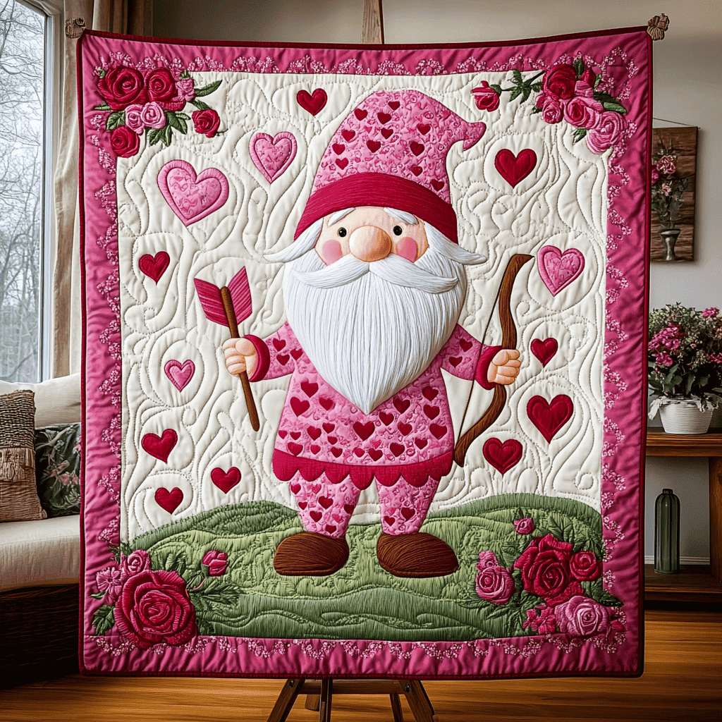 Cupid Gnome Hearts Quilted Blanket Room Accessories First Valentine Gift For Girlfriend