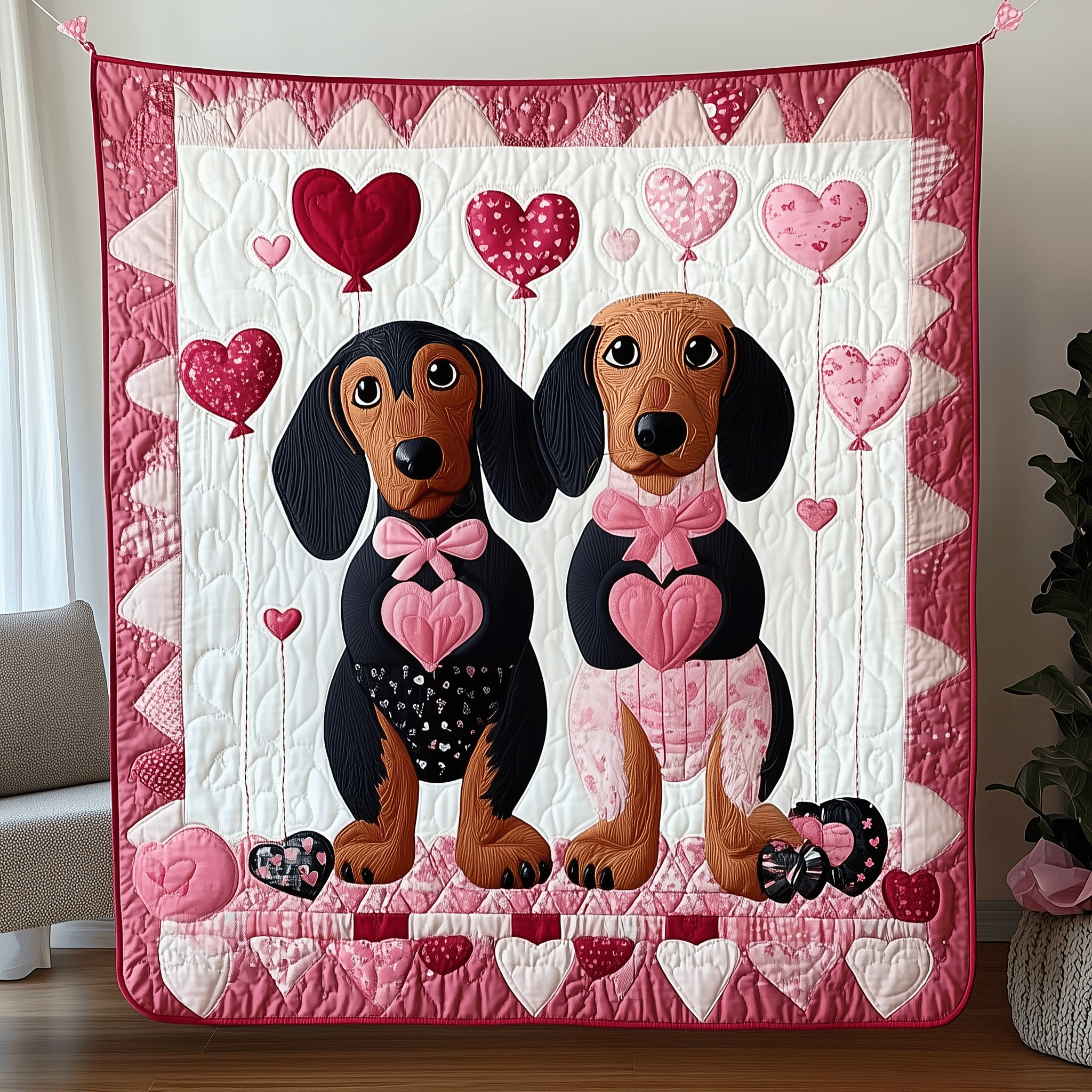 Dachshund Love Couple Quilted Blanket Room Accessories Lovely Gifts For Dachshund Dog Lovers