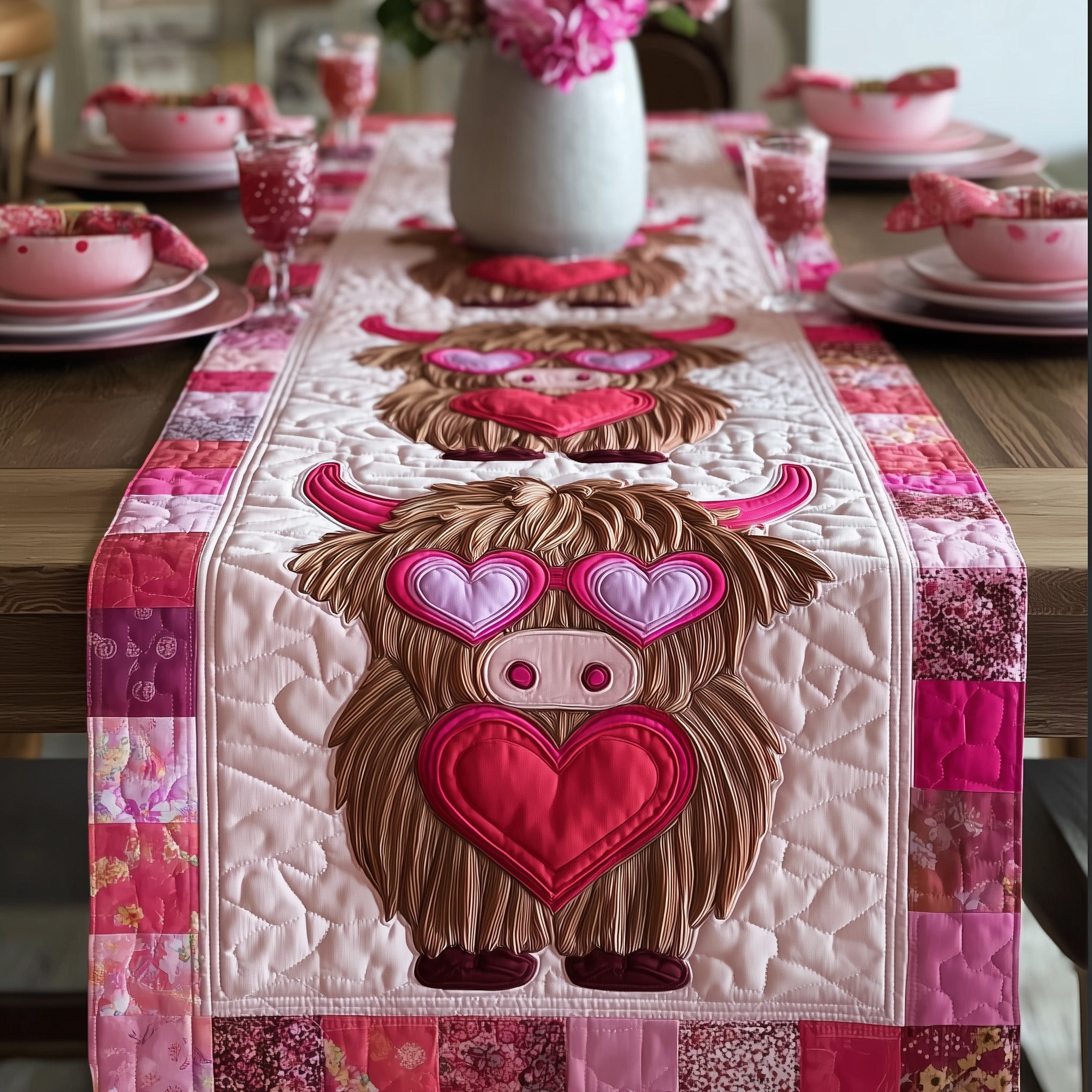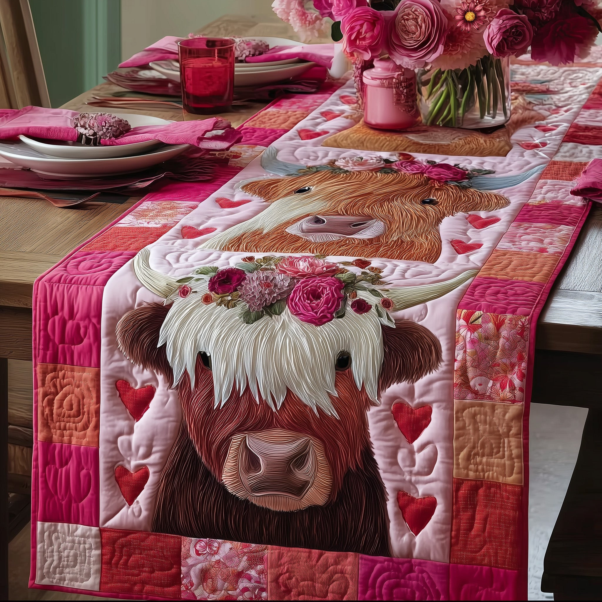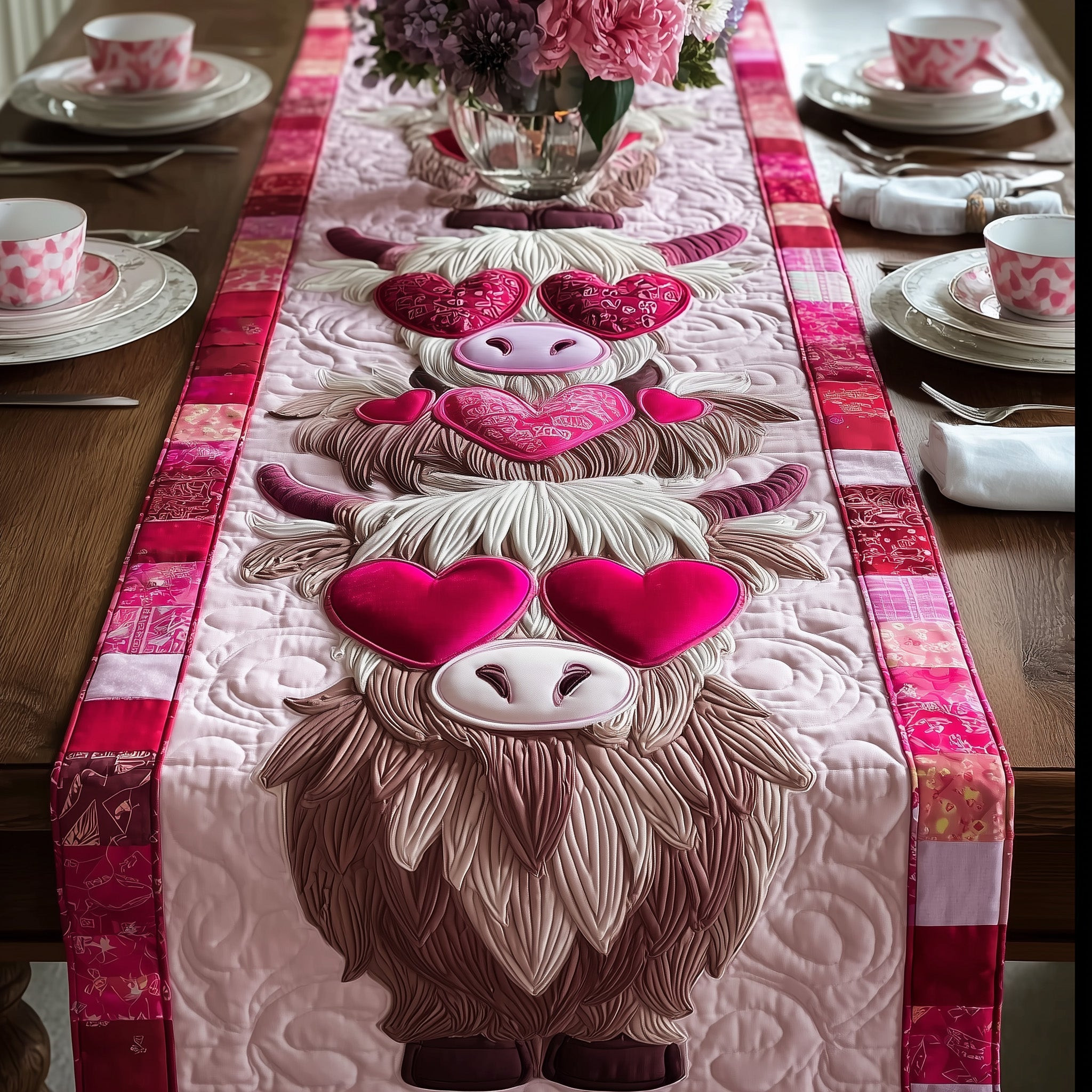 Valentine Graze Quilted Table Runner Holiday Home Decor Cow Owner Presents
