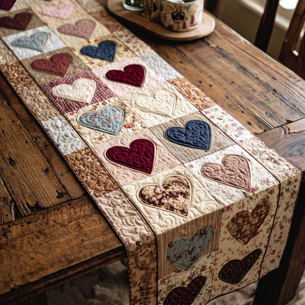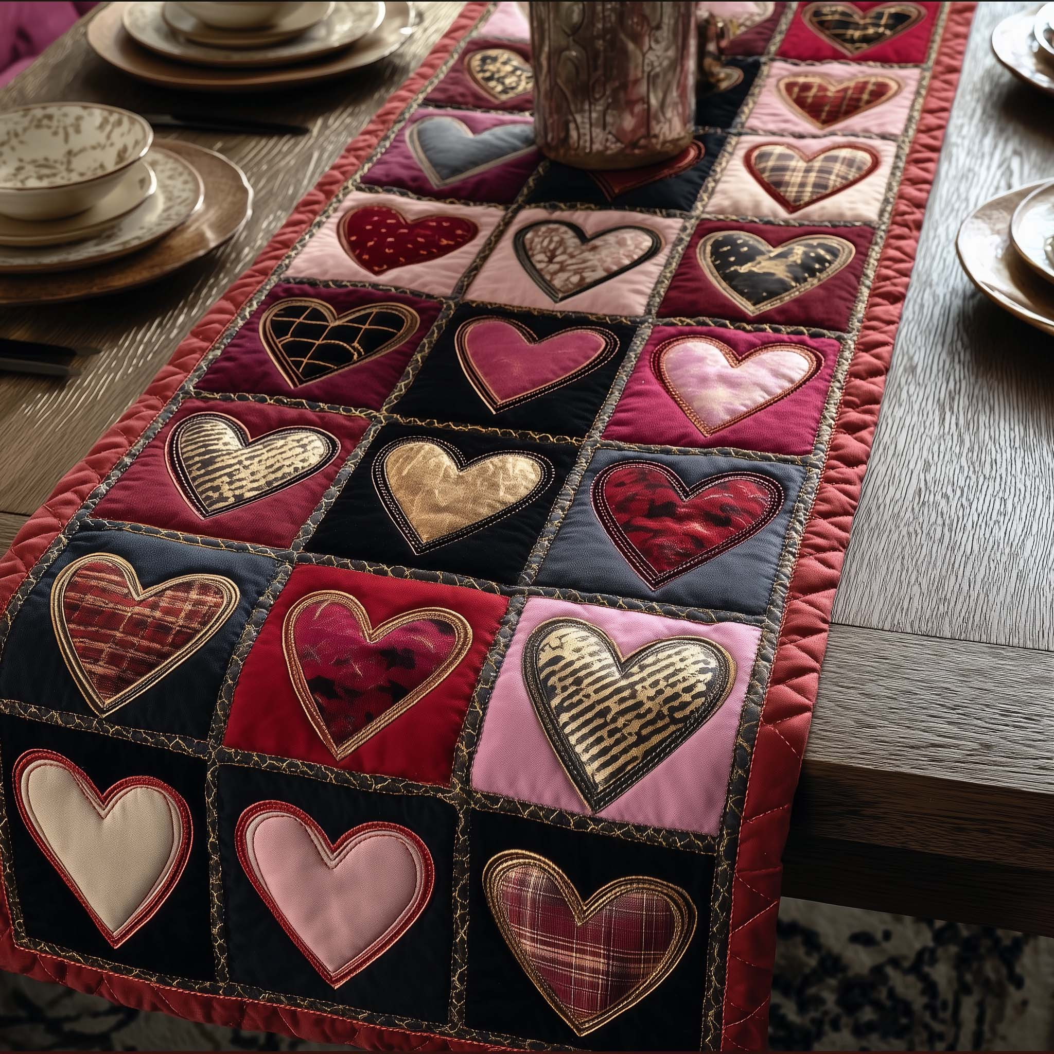Sweet Hearts Quilted Table Runner Cozy Home Decor Unique Gifts For Mother