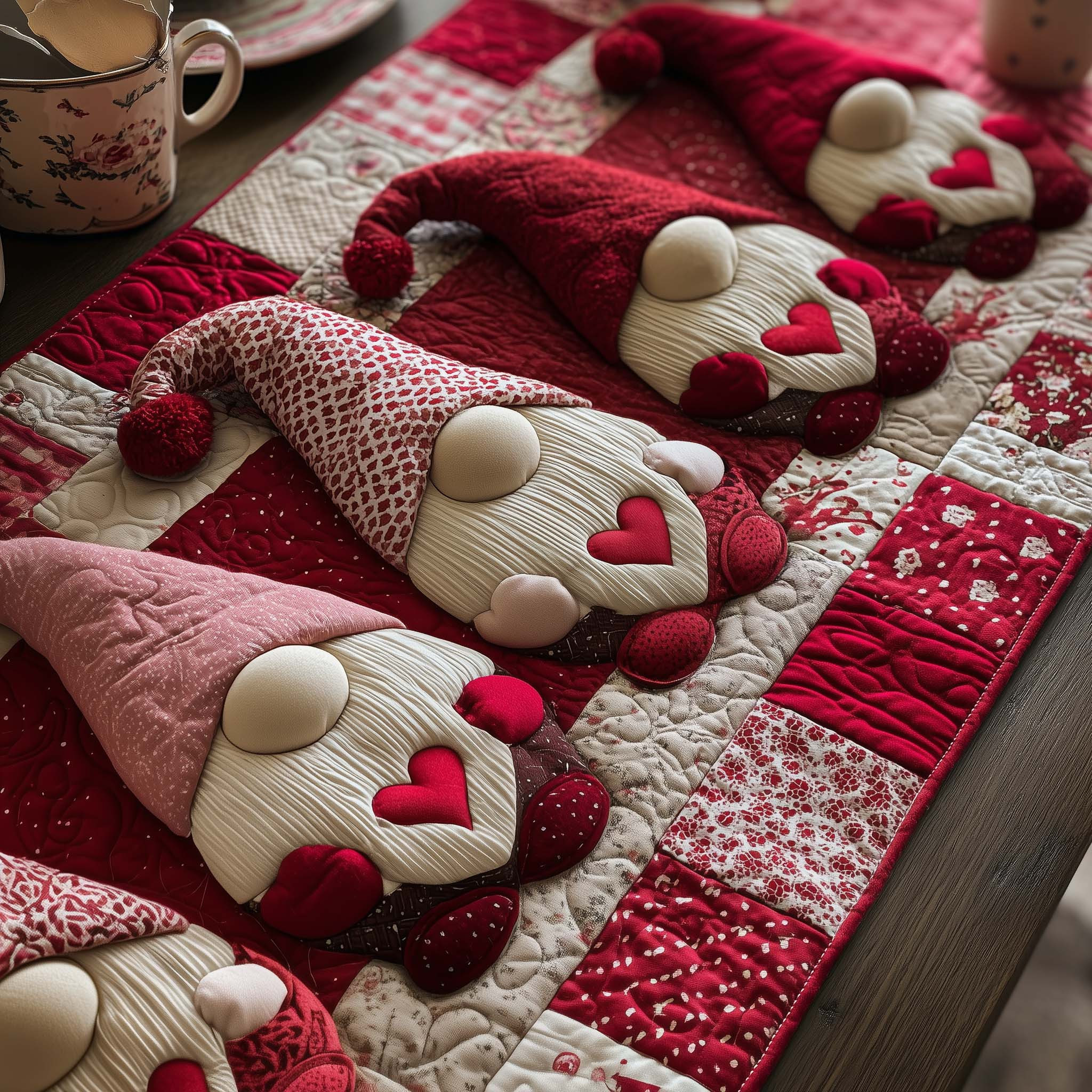 Sweetheart Gnomeville Quilted Table Runner Seasonal Home Decor Gift Ideas For Gnome Lovers