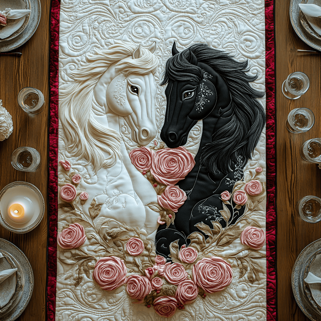 $29.95 – $49.95Price range: $29.95 through $49.95Together Forever Quilted Table Runner Luxury Home Decor Horse Lover Gift Ideas