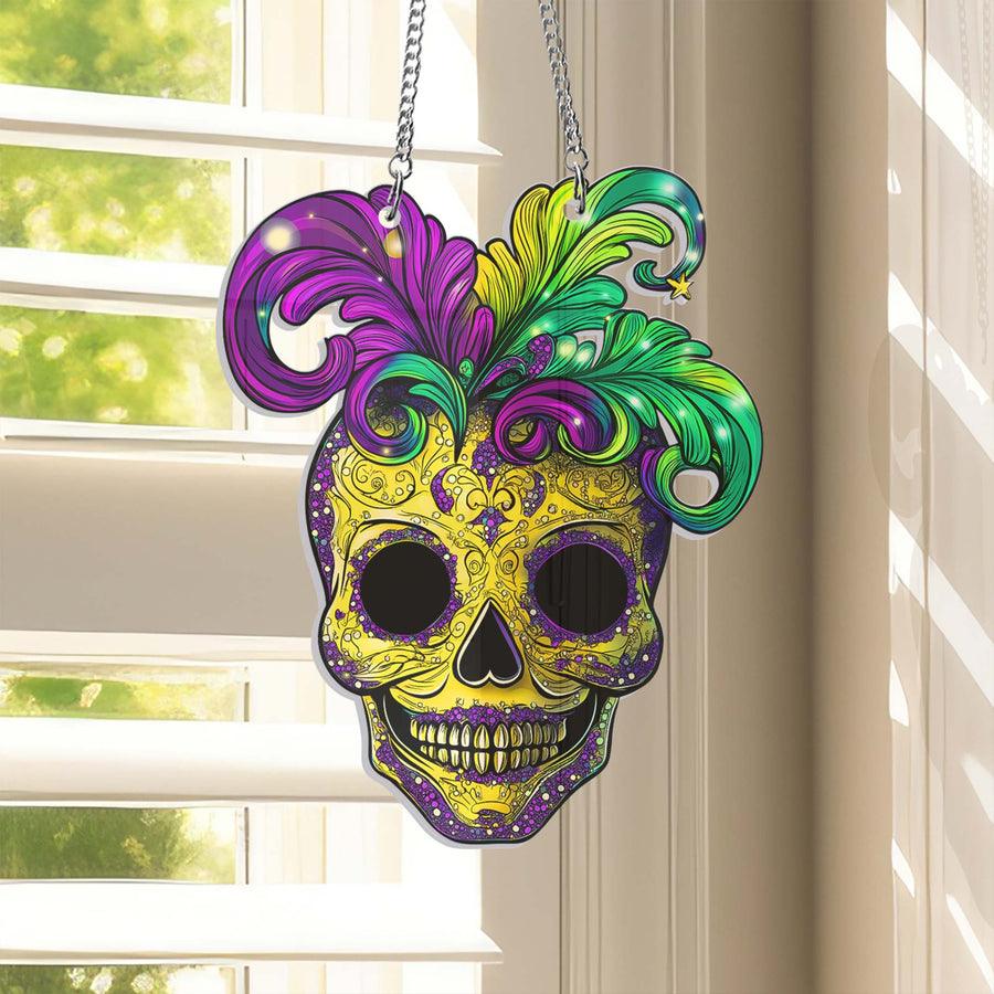 Mardi Gras Skull Suncatcher Acrylic Window Hanging Sign Skull Festive Gift