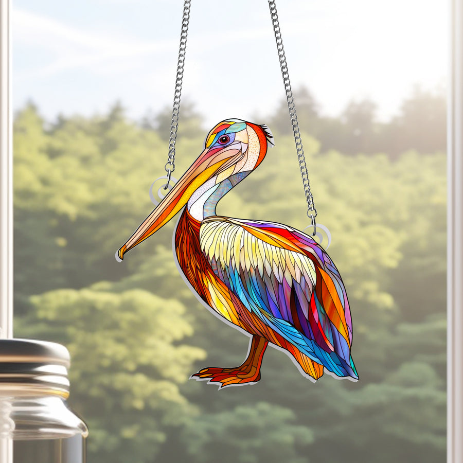 Pelican Bird Louisiana Suncatcher Acrylic Hanging Sign Mardi Gras Decor Gift Ideas