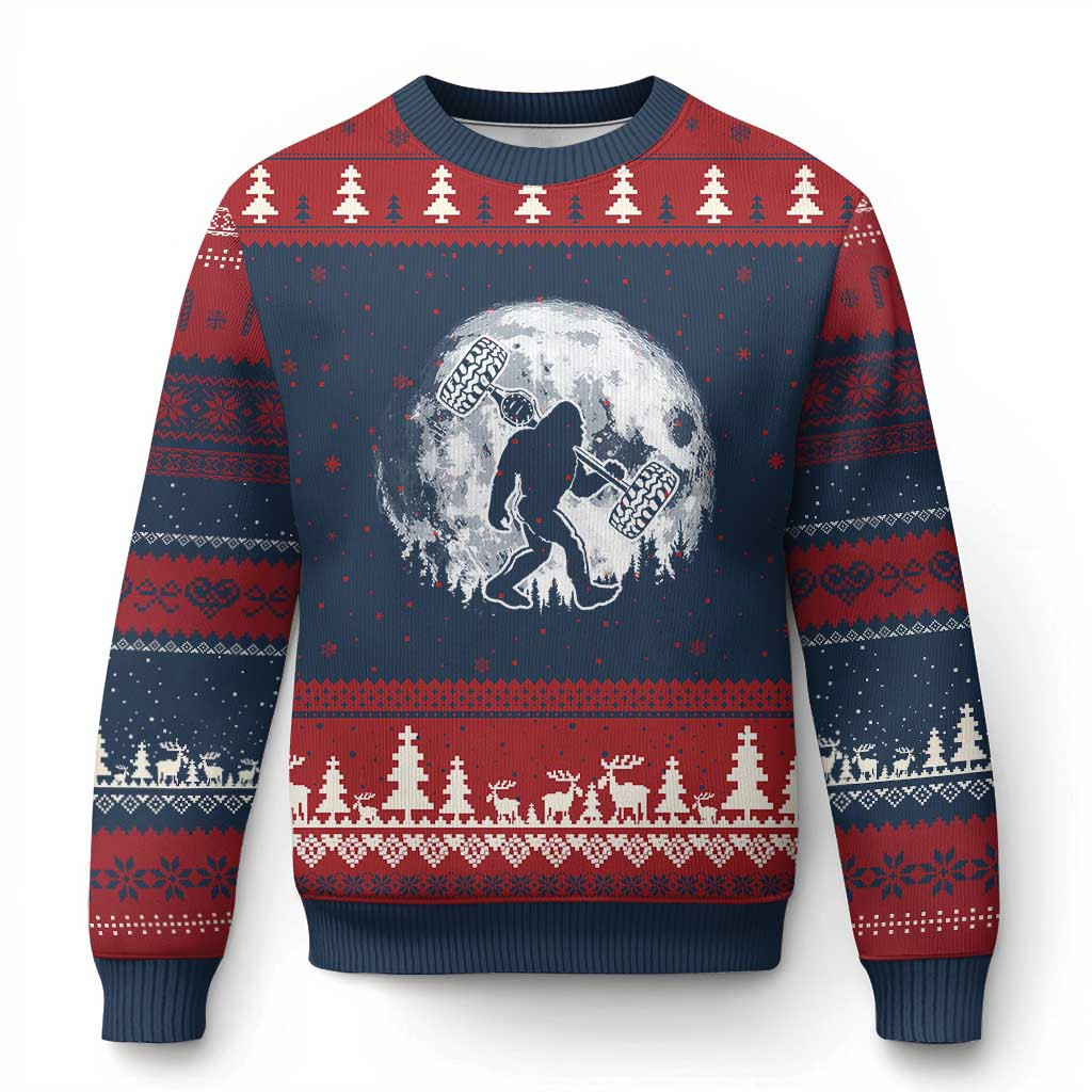 Rushgleam Bigfoot Off Road Car Night Stroll Ugly Christmas Sweater Funny Bigfoot Xmas Jumper Gifts