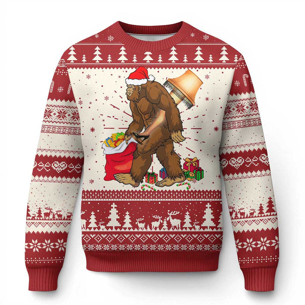 Rushgleam Bigfoot With Cocktail Ugly Christmas Sweater Sasquatch Sexy Sweater Bigfoot Xmas Gifts