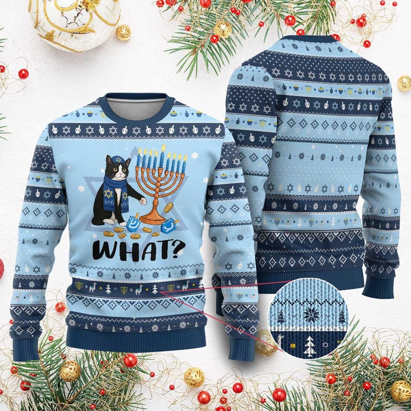 Rushgleam Black Cat What Ugly Christmas Sweater Hanukkah Clothing Gift For Cat Lovers Xmas