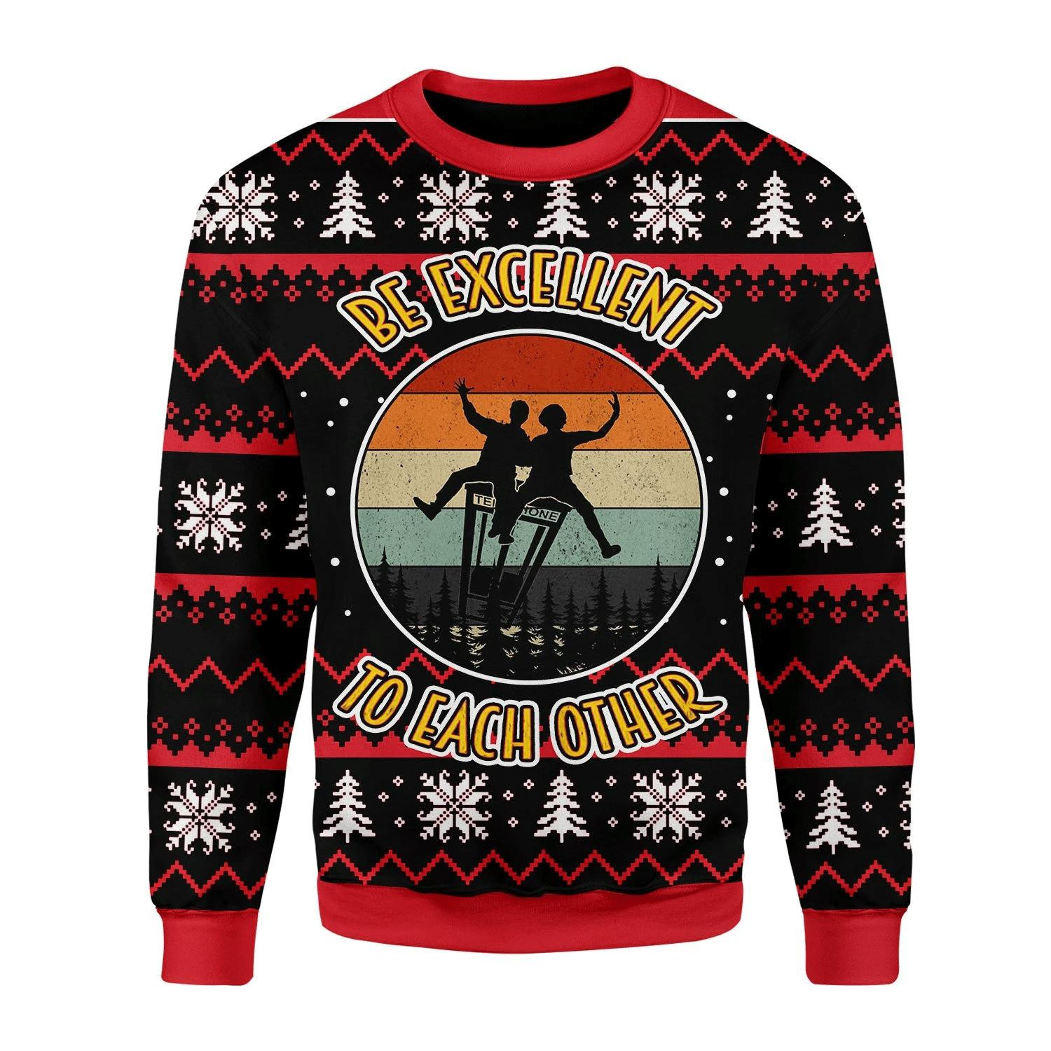 Be Excellent To Each Other Ugly Christmas Sweater Funny Positive Holiday Gift For Friends