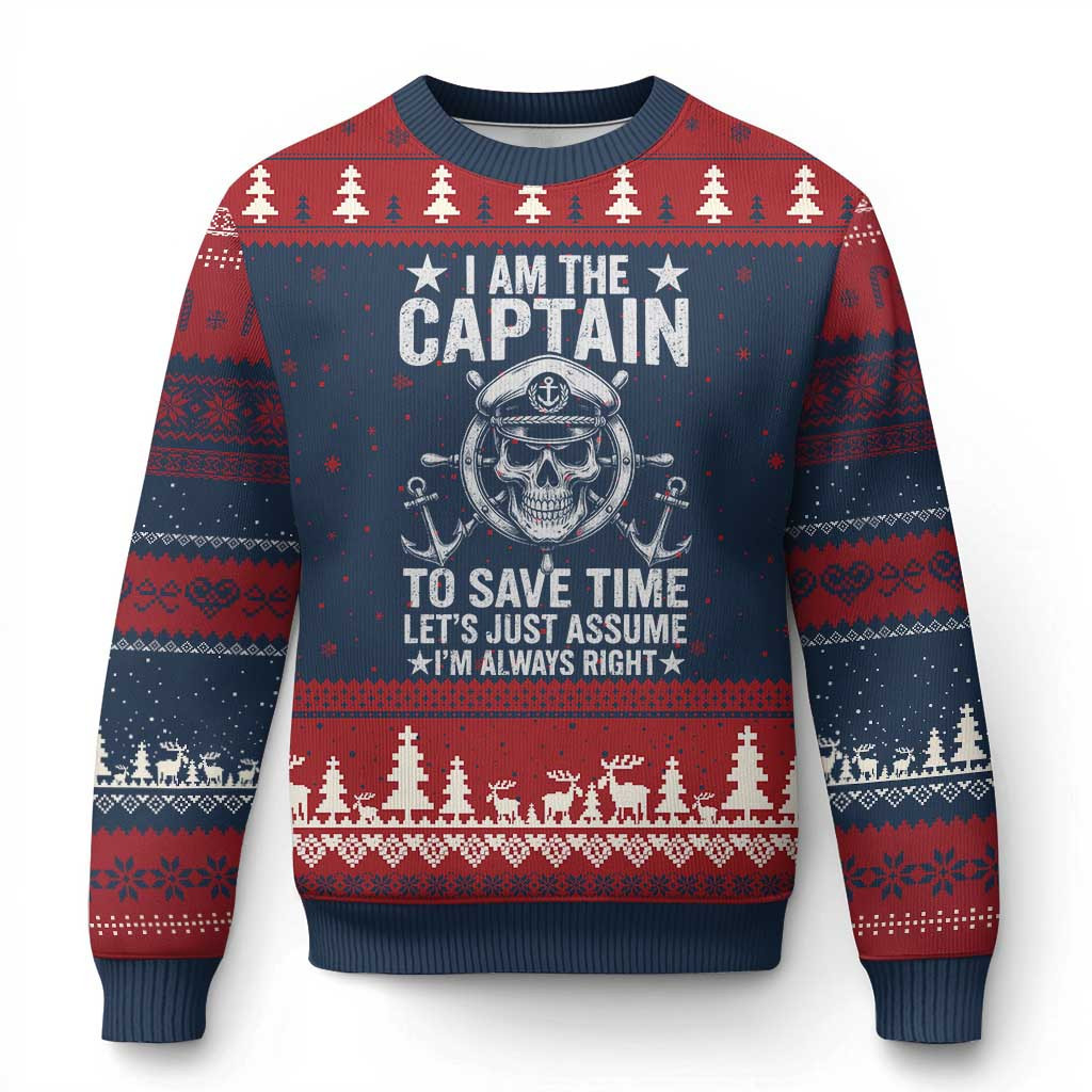 Rushgleam Boat Captain Ugly Christmas Sweater Funny Skeleton Captain Sweater Anchor Themed Gifts
