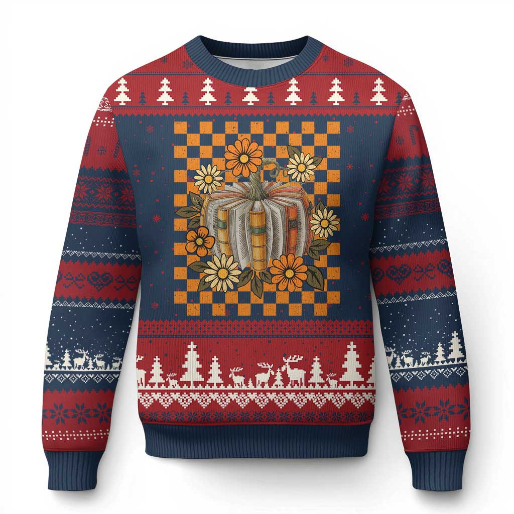 Rushgleam Book Pumpkin Ugly Christmas Sweater Fall Halloween Book Sweater Bookish Gifts For Her
