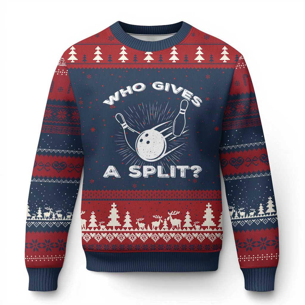 Rushgleam Bowling Who Gives A Split Ugly Christmas Sweater Funny Bowling Quote Sweater Bowler Gifts