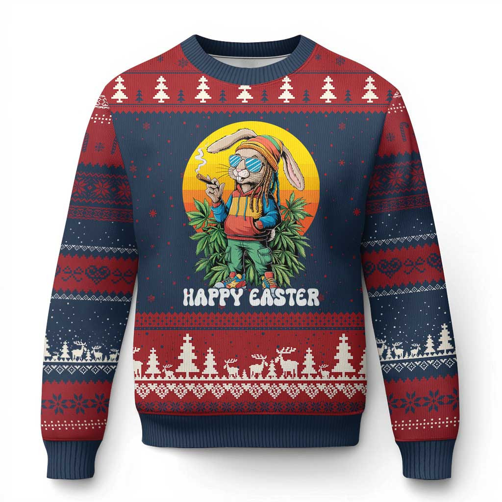 Rushgleam Bunny High On Easter Low On Chocolate Ugly Christmas Sweater Funny Happy 420 Easter Mom Gift