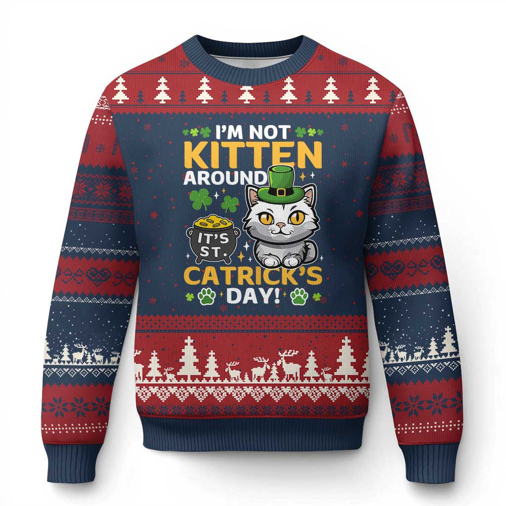 Rushgleam Cat Ugly Christmas Sweater I’m Not Kitten Around Catrick’s Day Funny Xmas Sweaters
