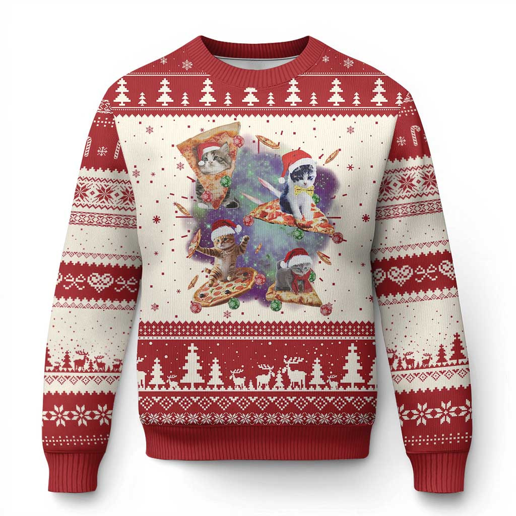 Rushgleam Cat Ugly Christmas Sweater Santa Cat Riding Pizza Galaxy Outer Space Cute Gift Ideas