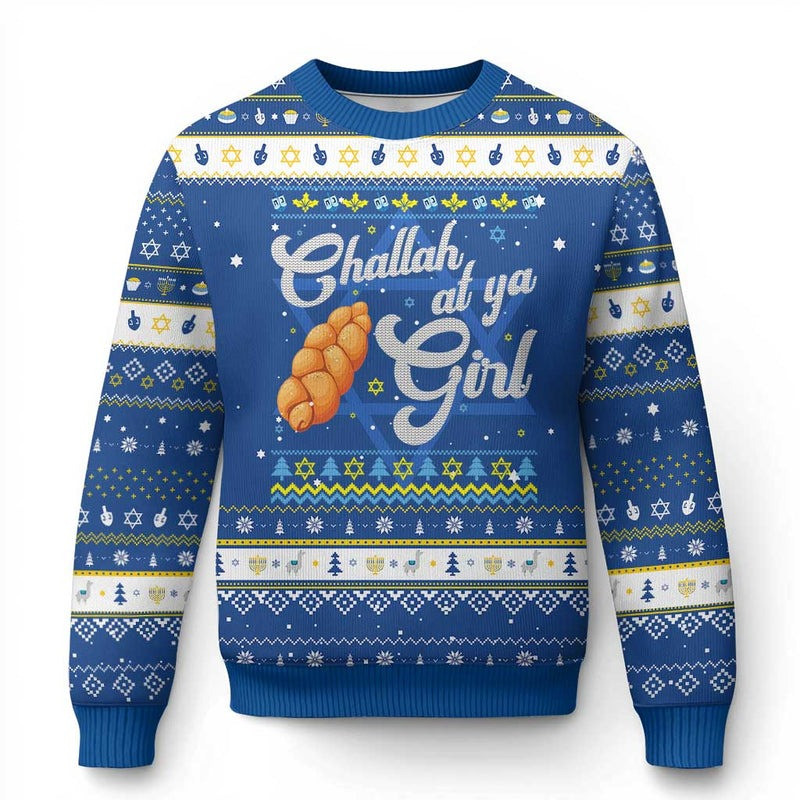 Rushgleam Challah At Ya Girl Ugly Christmas Sweater Funny Hanukkah Apparel Gift For Girl
