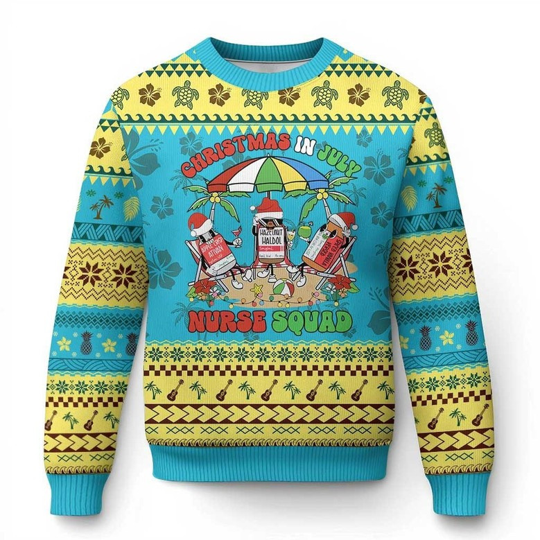 Rushgleam Christmas In July Nurse Squad Ugly Christmas Funny Tropical Sweater Gifts For Nurse