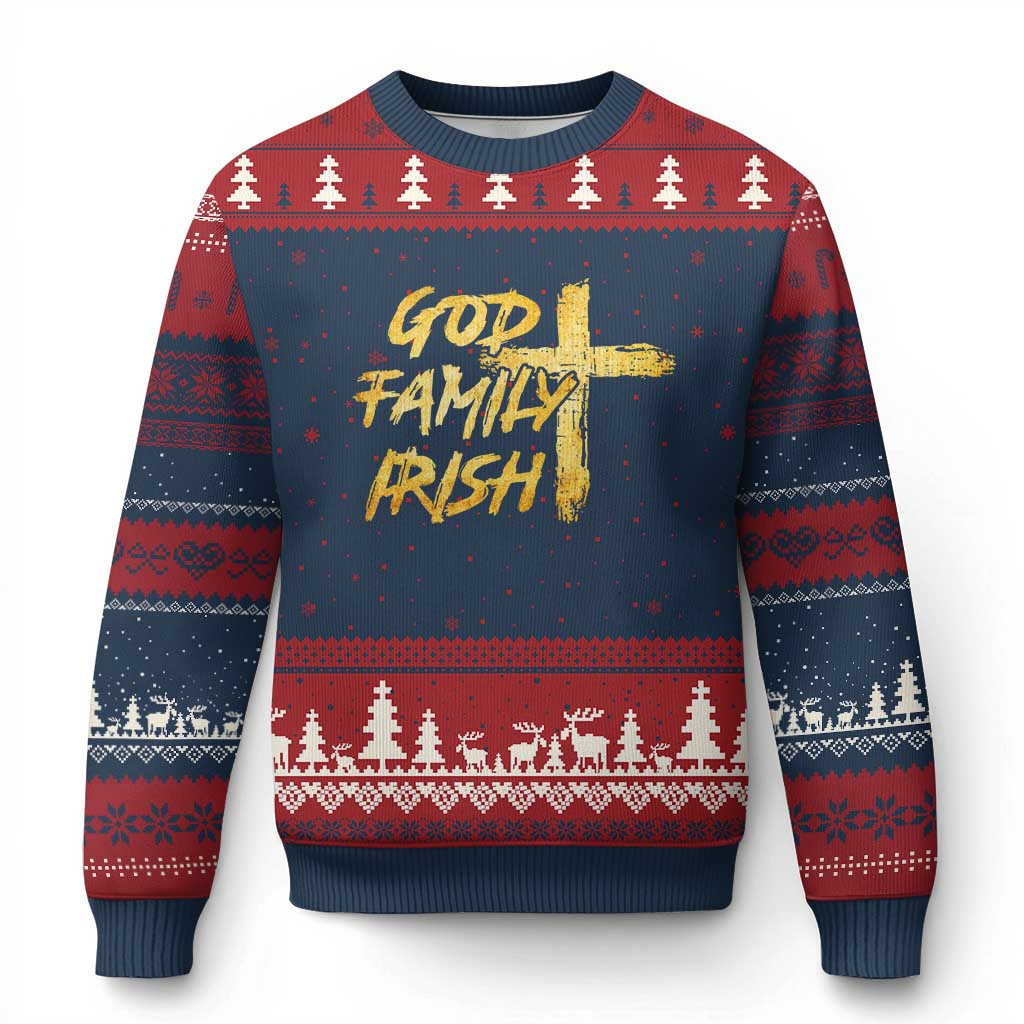 Rushgleam Cross God Family Irish Ugly Christmas Sweater Faith Xmas Clothing Gift For Christian