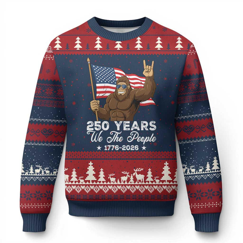 Bigfoot 250 Years We The People Ugly Christmas Sweater Funny Patriotic Bigfoot Jumper Gifts