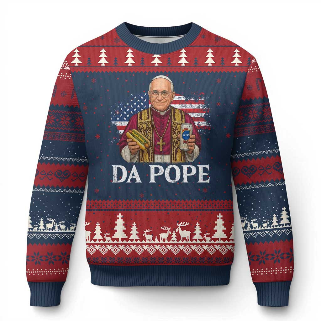 Rushgleam Da Pope Leo XIV Ugly Christmas Sweater Hotdog And Beer Faith Xmas Gift For Him