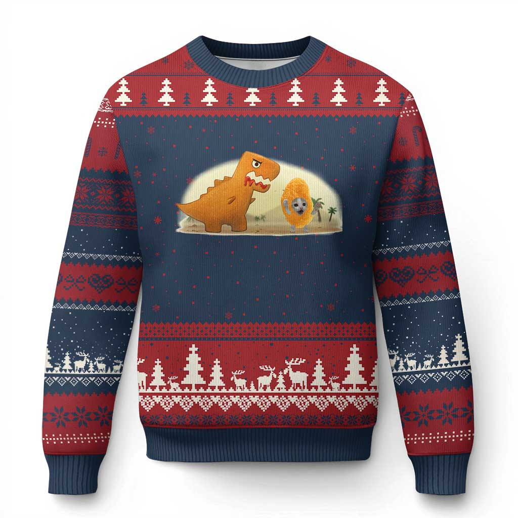 Rushgleam Dinosaur Eating Chicken Nuggets Ugly Christmas Sweater Cute Food Humor Gift For Girl